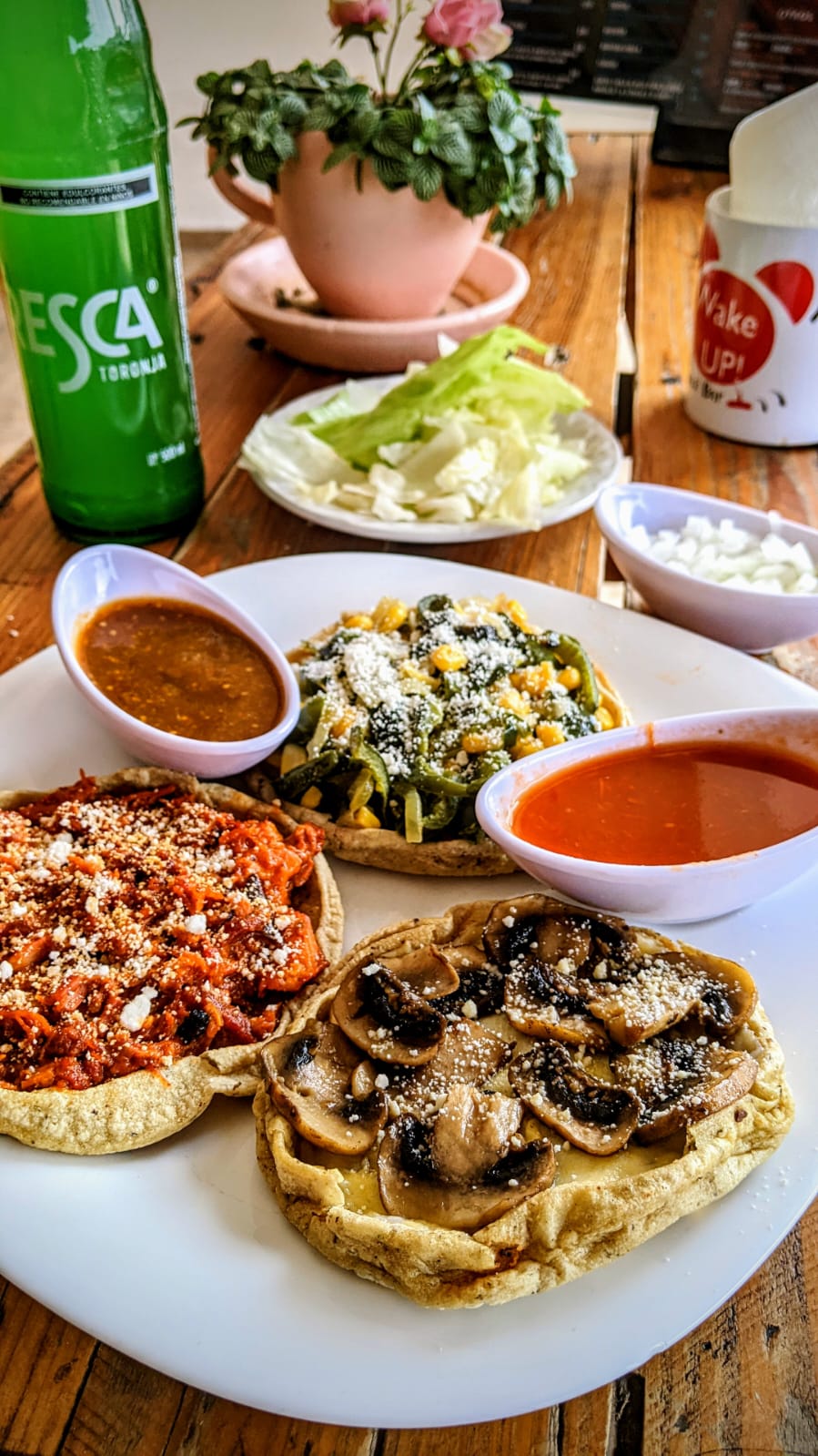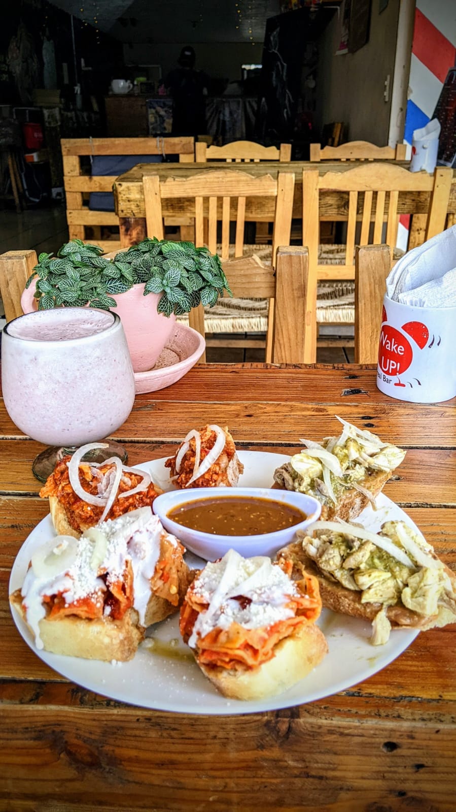 3 Tapitas de chilaquiles y 3 de Chicharrón