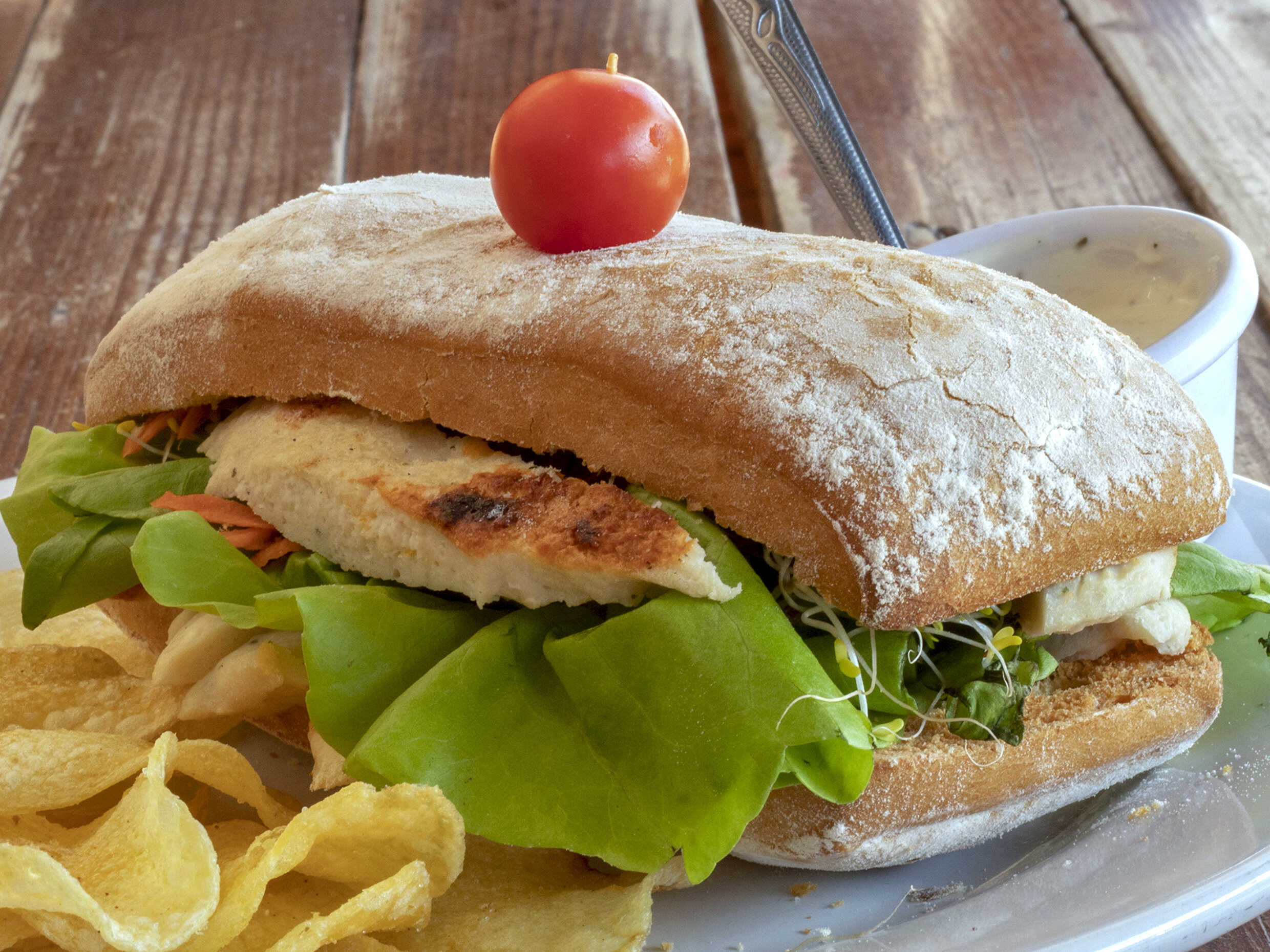 Pollo a la plancha, germen, lechuga y zanahoria.