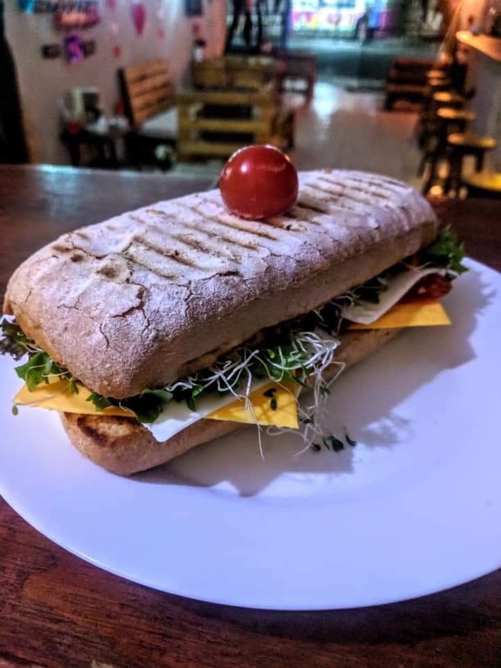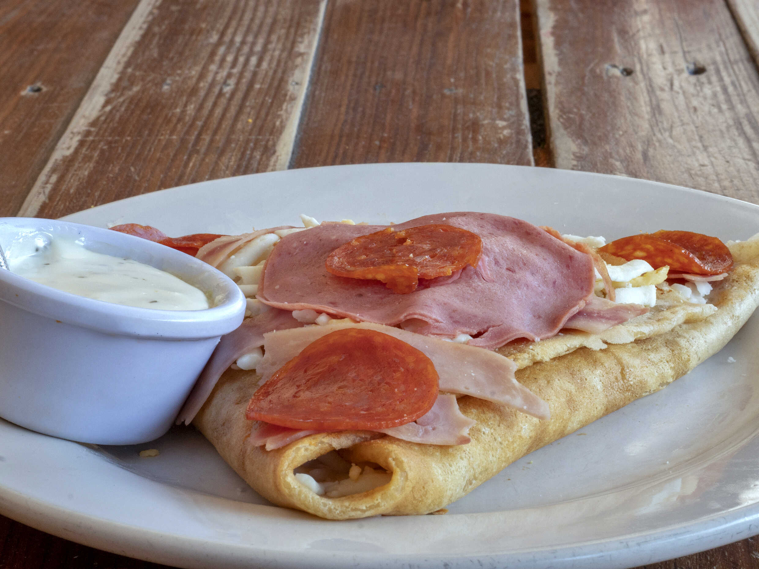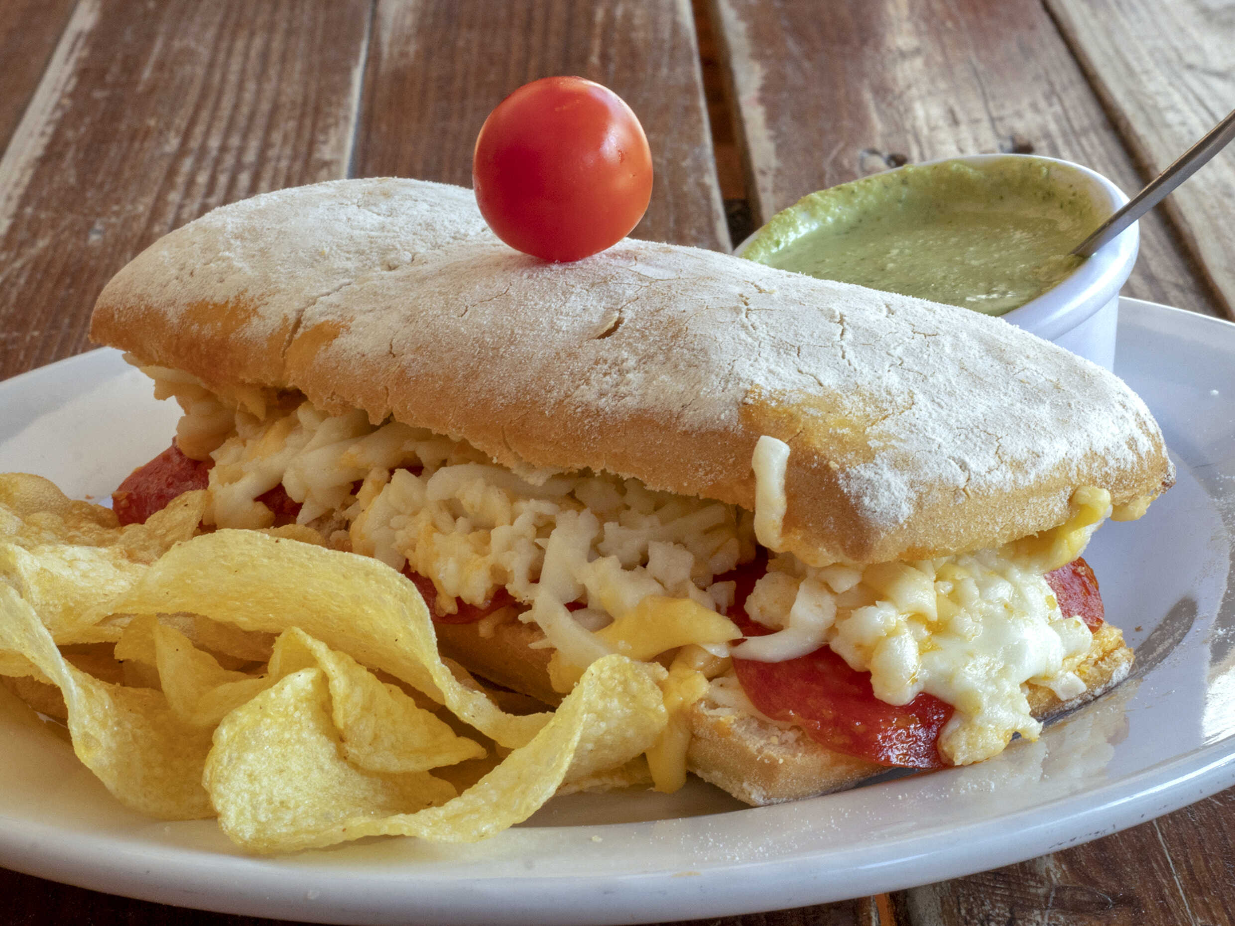 Salami, pepperoni, queso amarillo, queso manchego, lechuga, germen y aderezo.