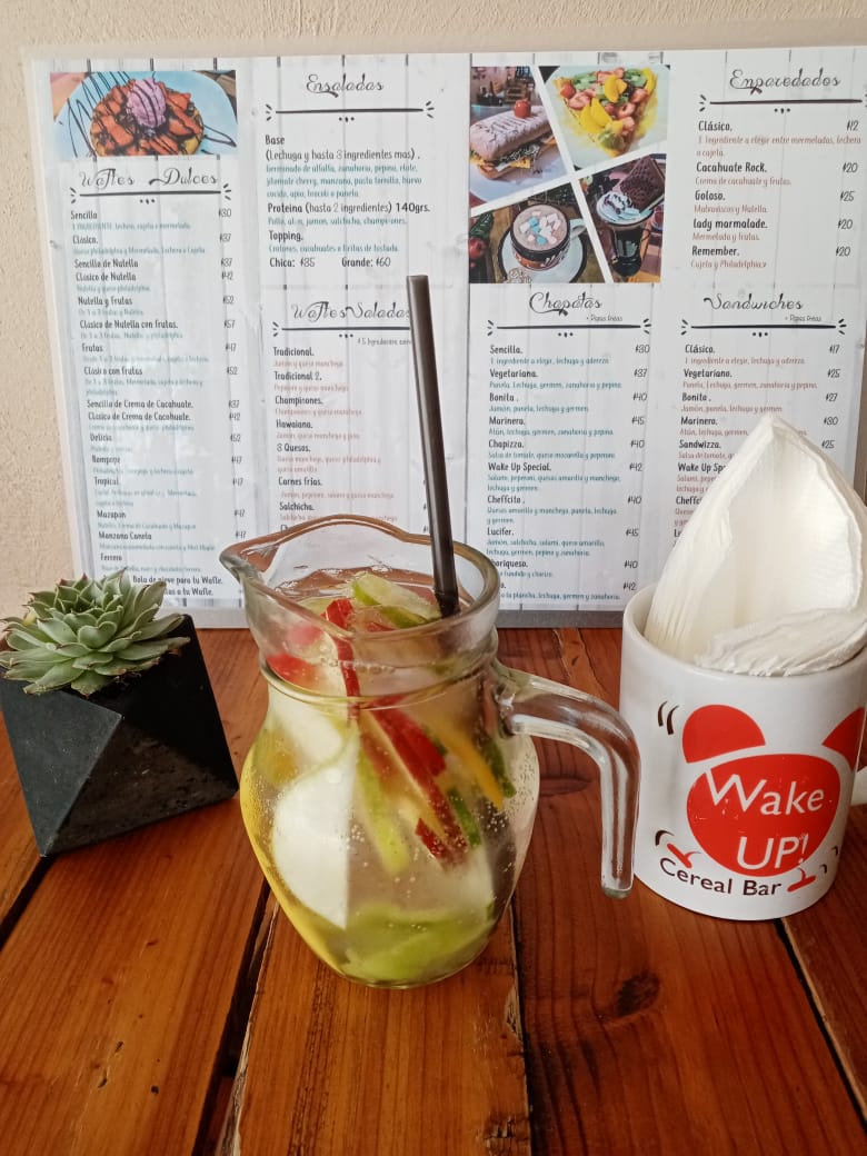 Panela, germen, lechuga, pepino, zanahoria y aderezo.