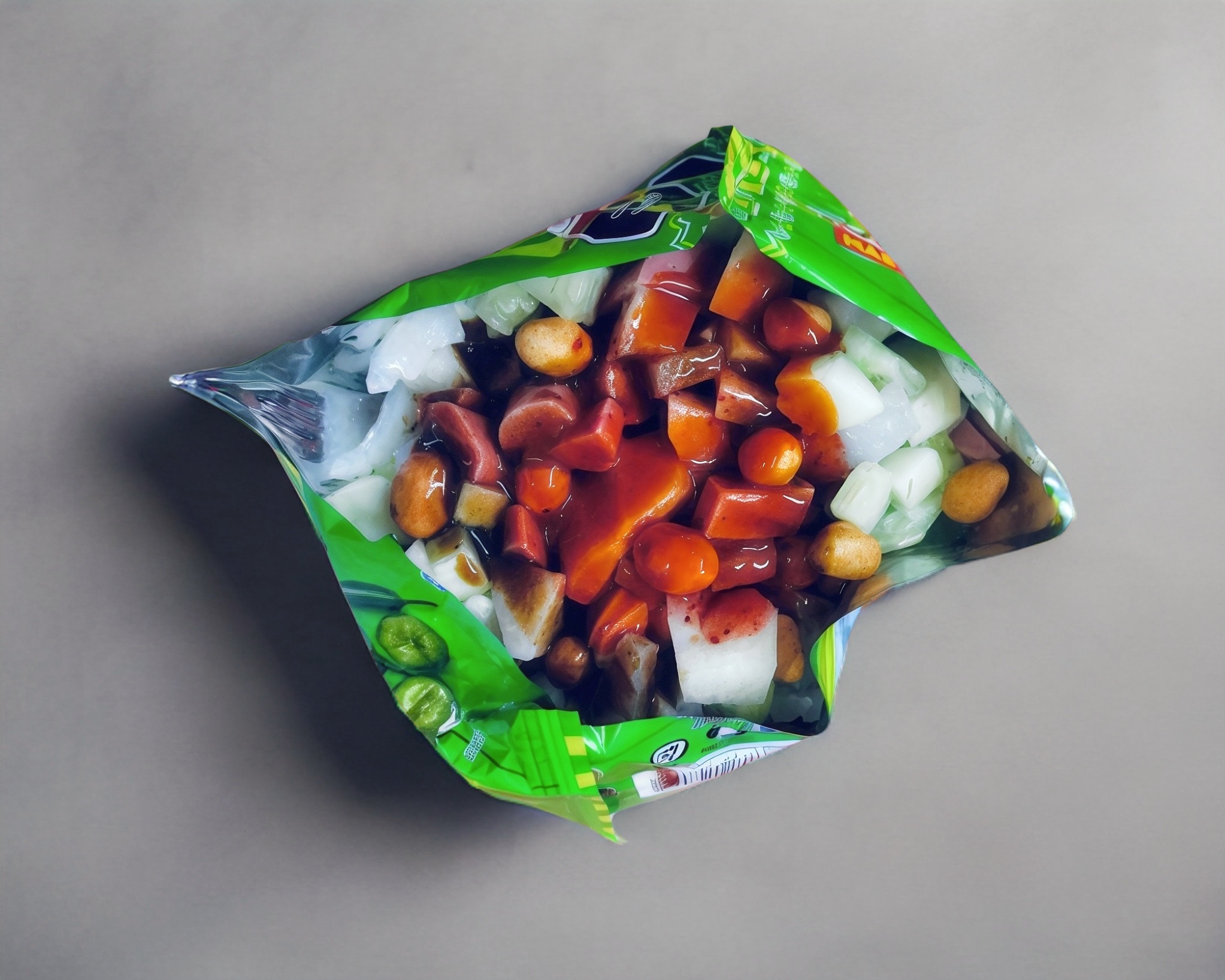 Jícama pepino cuerito salchicha cacahuate japonés rielitos clamato y chile salsa magi