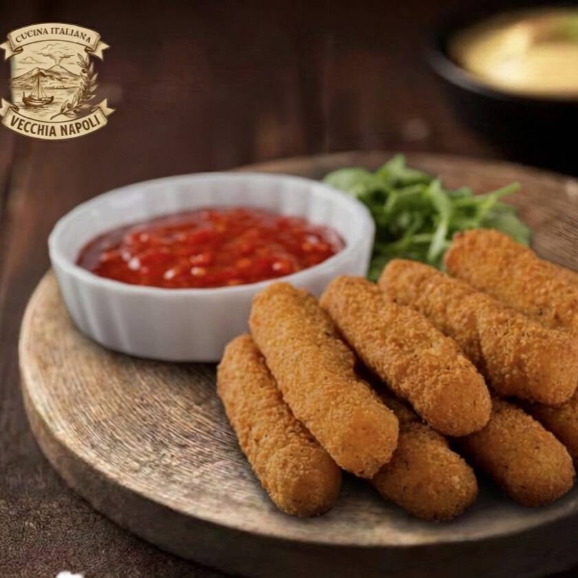 El "cheese pull" perfecto. Empanizado crujiente que resguarda un corazón de queso fundido y elástico.