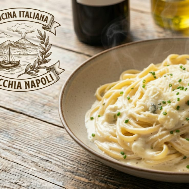 Una experiencia de sabor audaz y sofisticada. Esta pasta rinde homenaje al queso en sus mejores facetas: la intensidad salina del Parmesano, la base sedosa de la Mozzarella, el carácter del Gorgonzola y el toque distintivo, fresco y ligeramente cítrico del Queso de Cabra. Una combinación de texturas que se funden en una salsa aterciopelada llena de matices