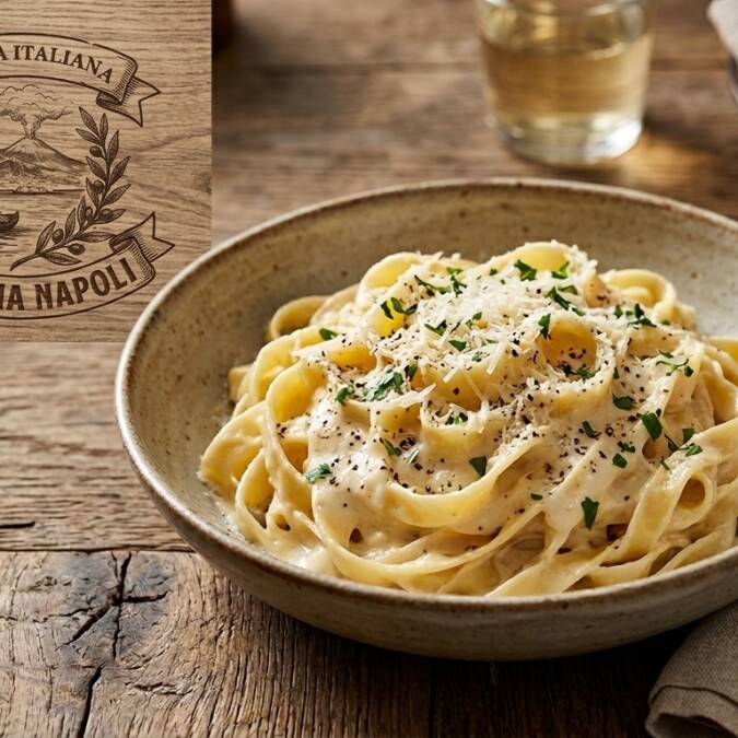 Una emulsión cremosa de mantequilla fina y queso parmesano que abraza delicadamente la pasta