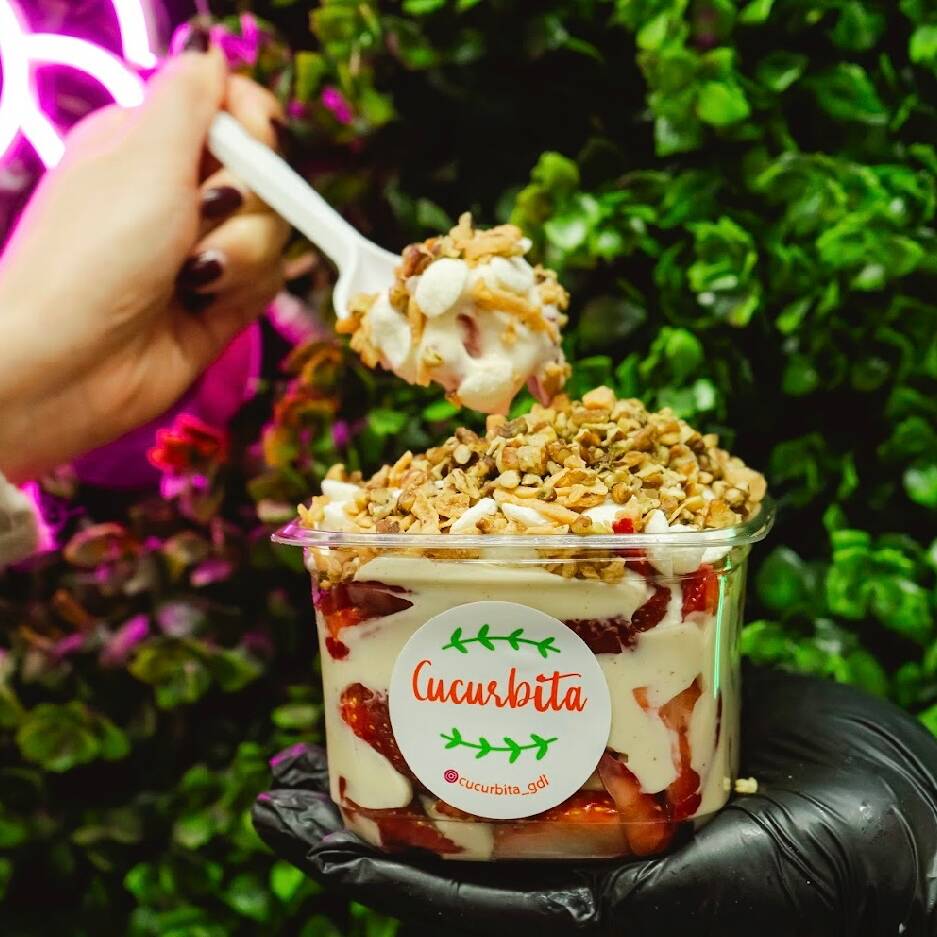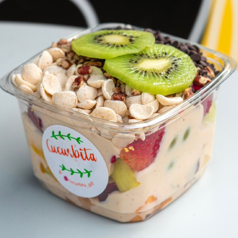 Mezcla de frutas a tu gusto, acompañadas con crema dulce de la casa.