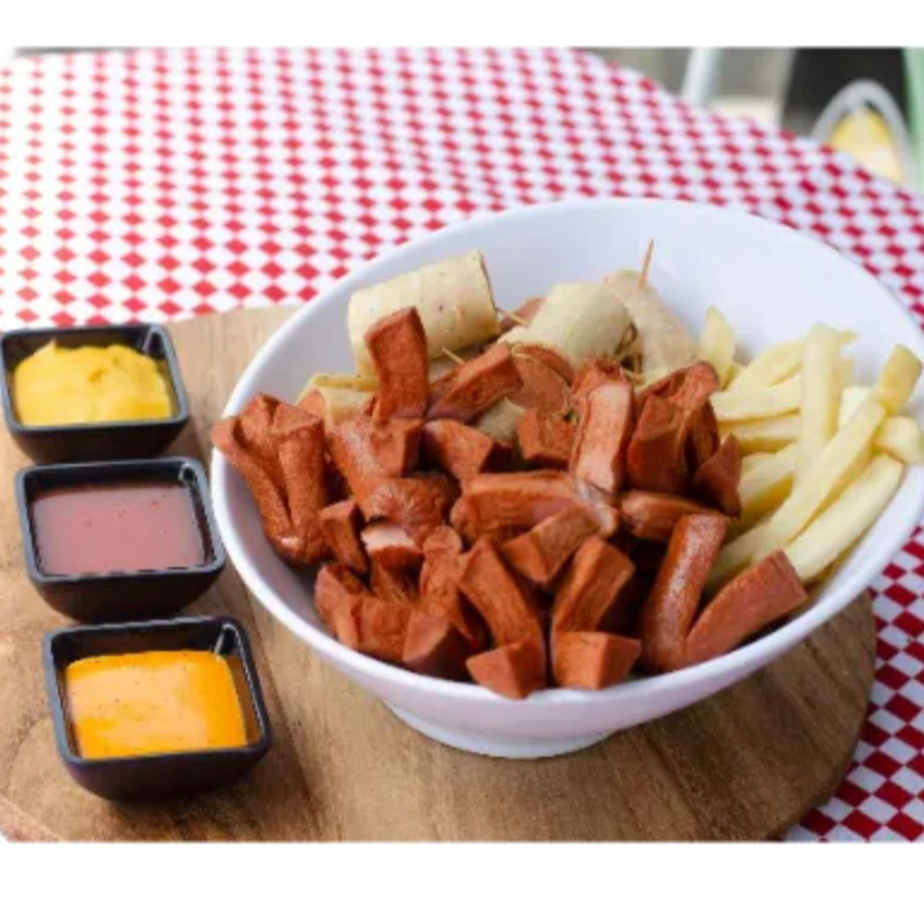 Mezcla de papas a la francesa, salchitacos y salchipulpos.