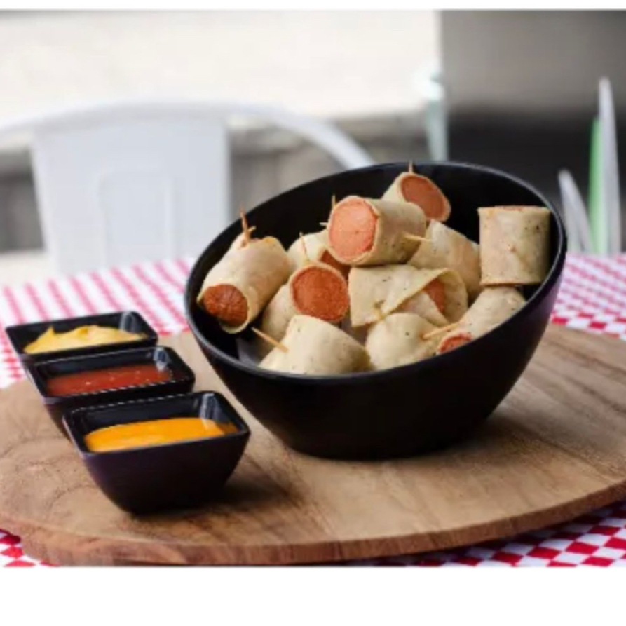 24 Ricas piezas de salchicha de pavo cubierta de tortilla.
