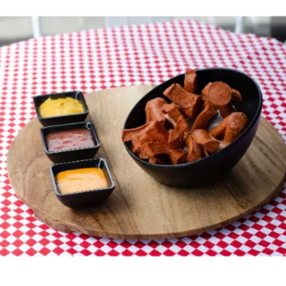 Deliciosos trozos de salchicha de pavo, fritos acompañados de tu aderezo favorito. (12 piezas).