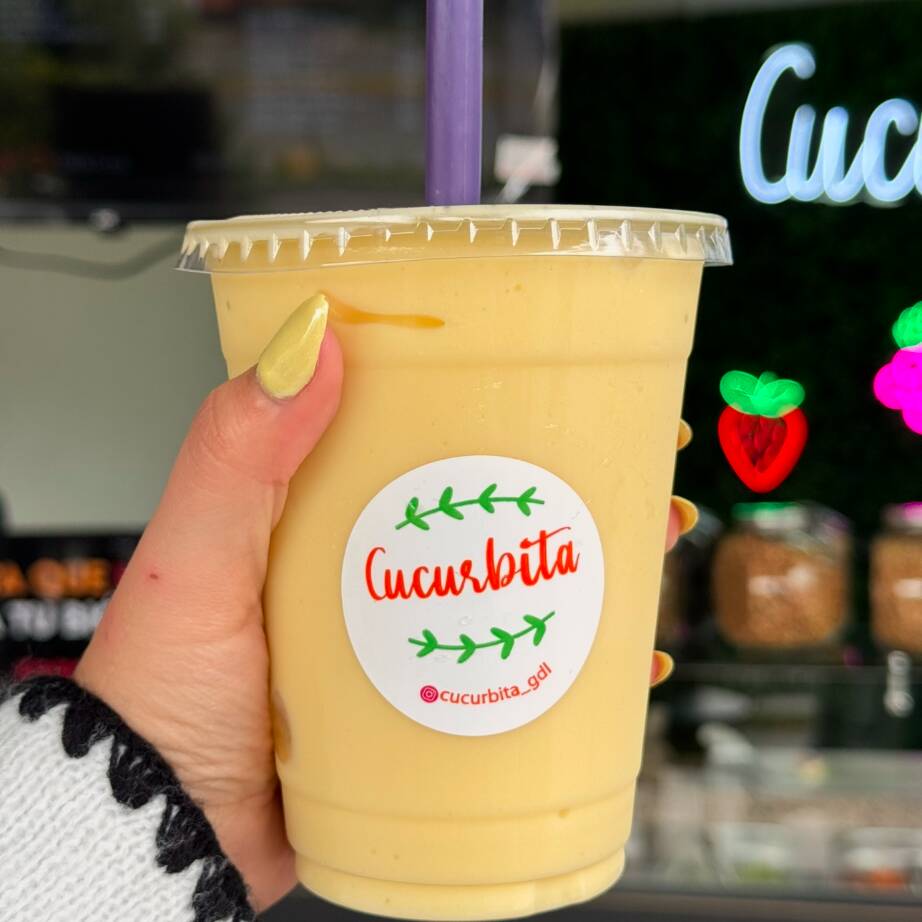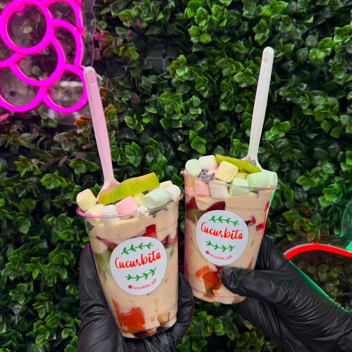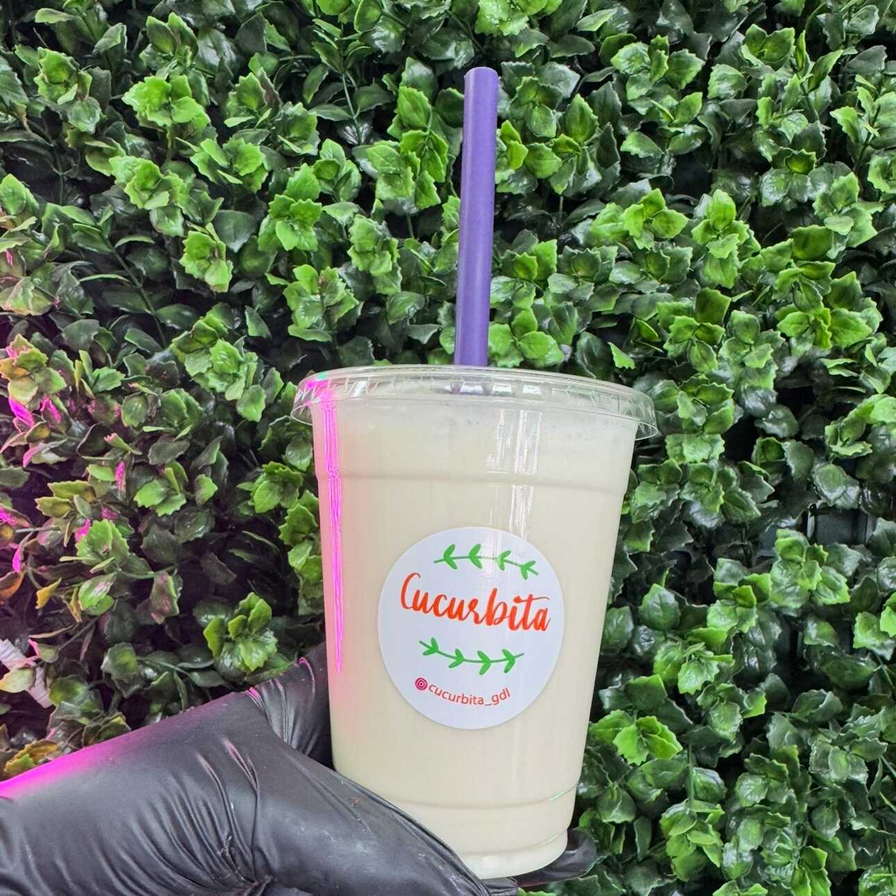 (354 ML)Coctel de Frutas (Melón, Papaya,Piña, Guayaba, Manzana,Fresa, Uva, Kiwi, Plátano), a base de jugo y granadina.