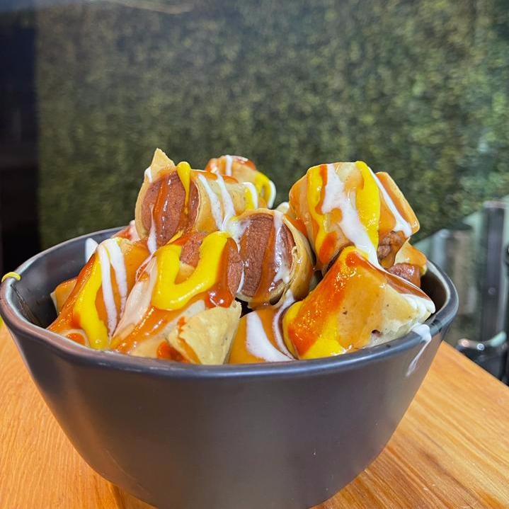 24 ricas piezas de salchicha de Pavo cubierta de tortilla.