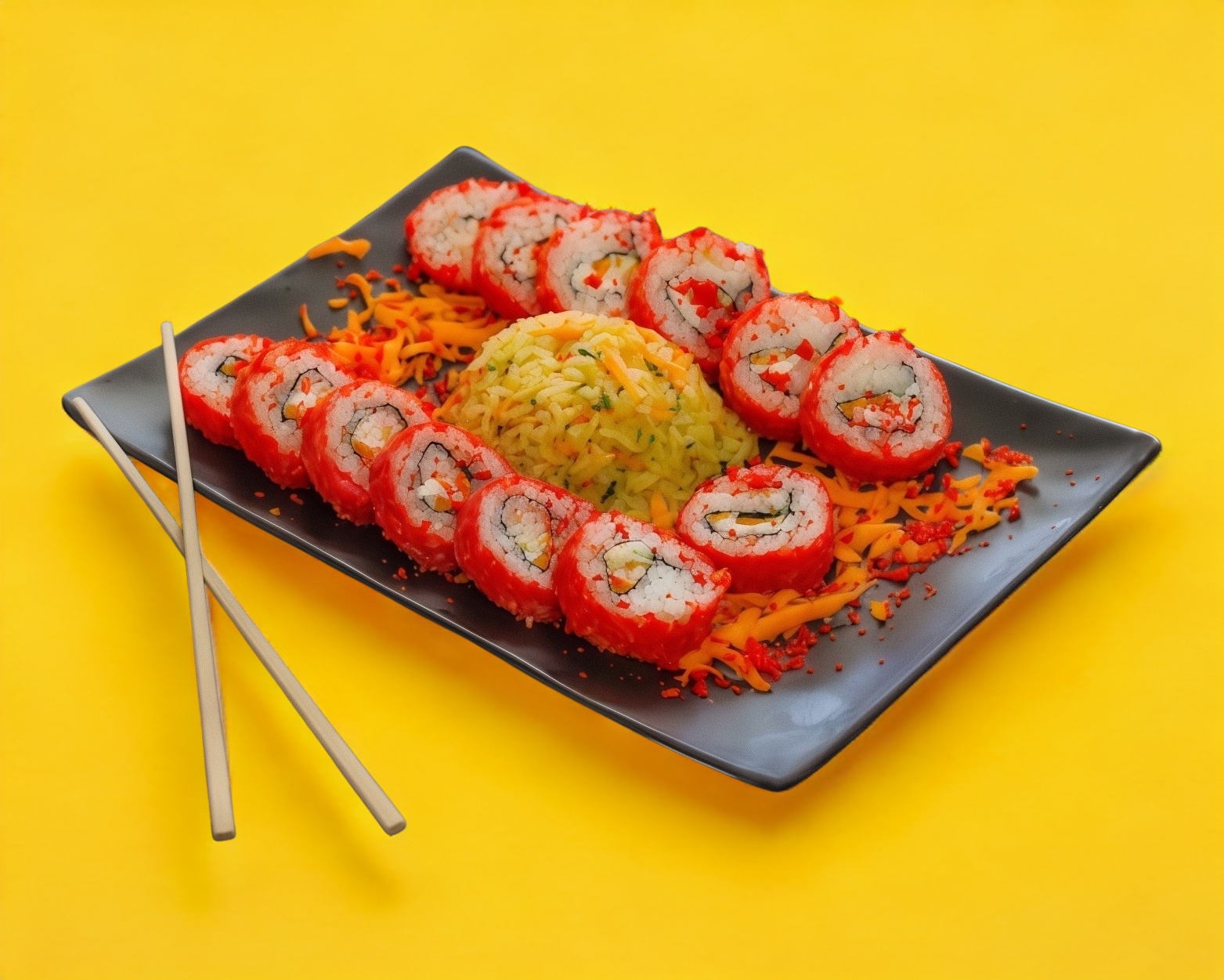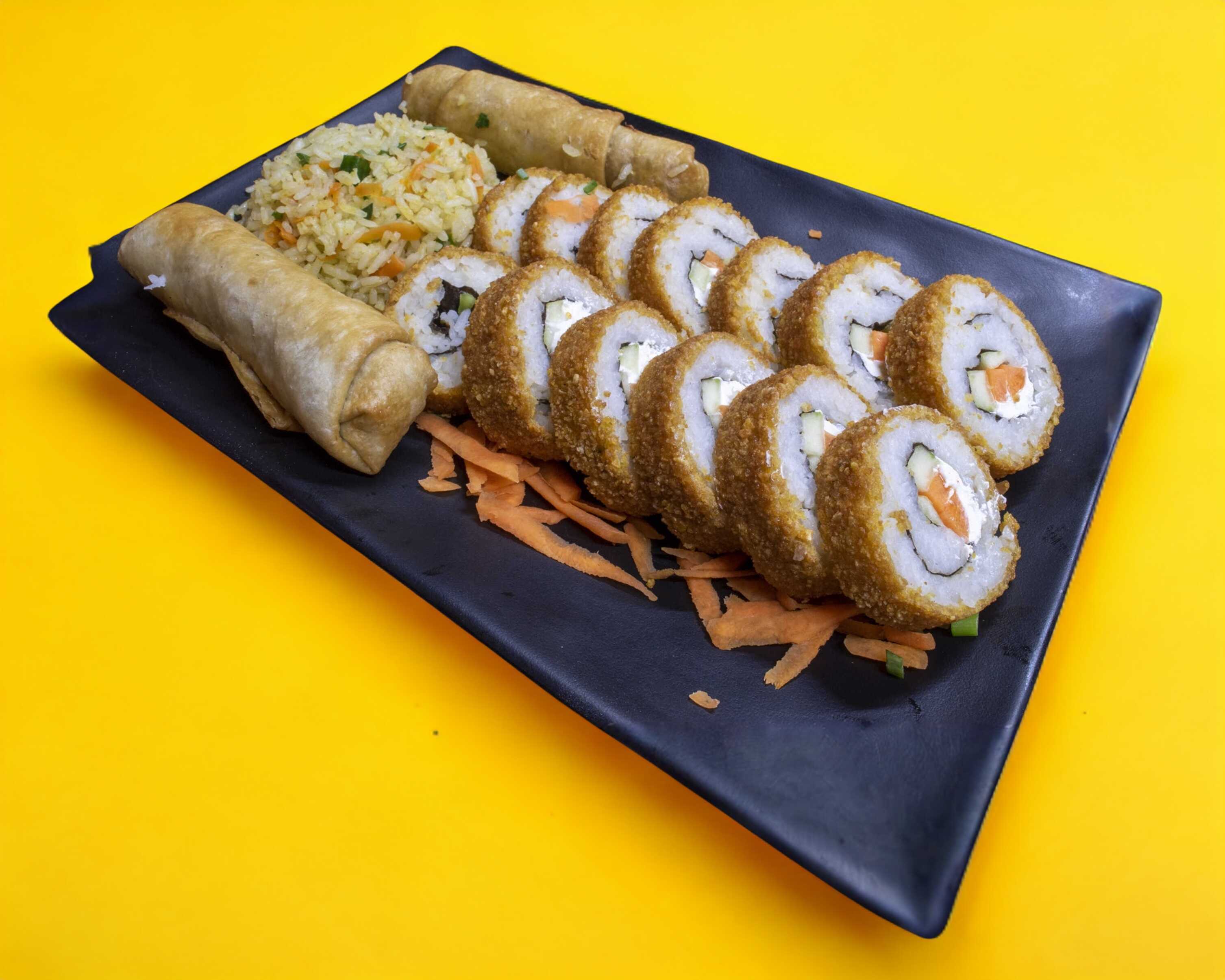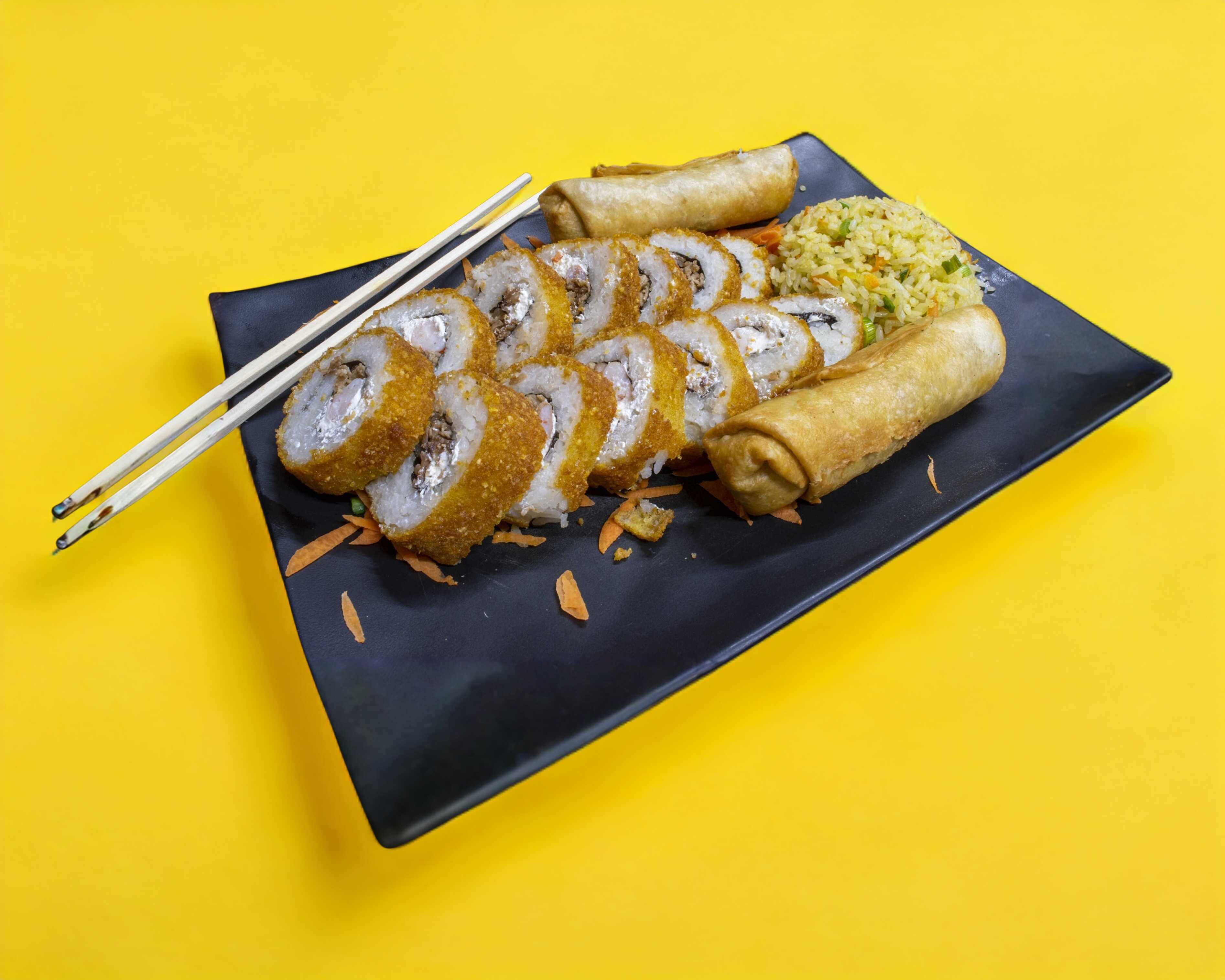 1 Sushi Empanizado + 2 Rollitos Primavera