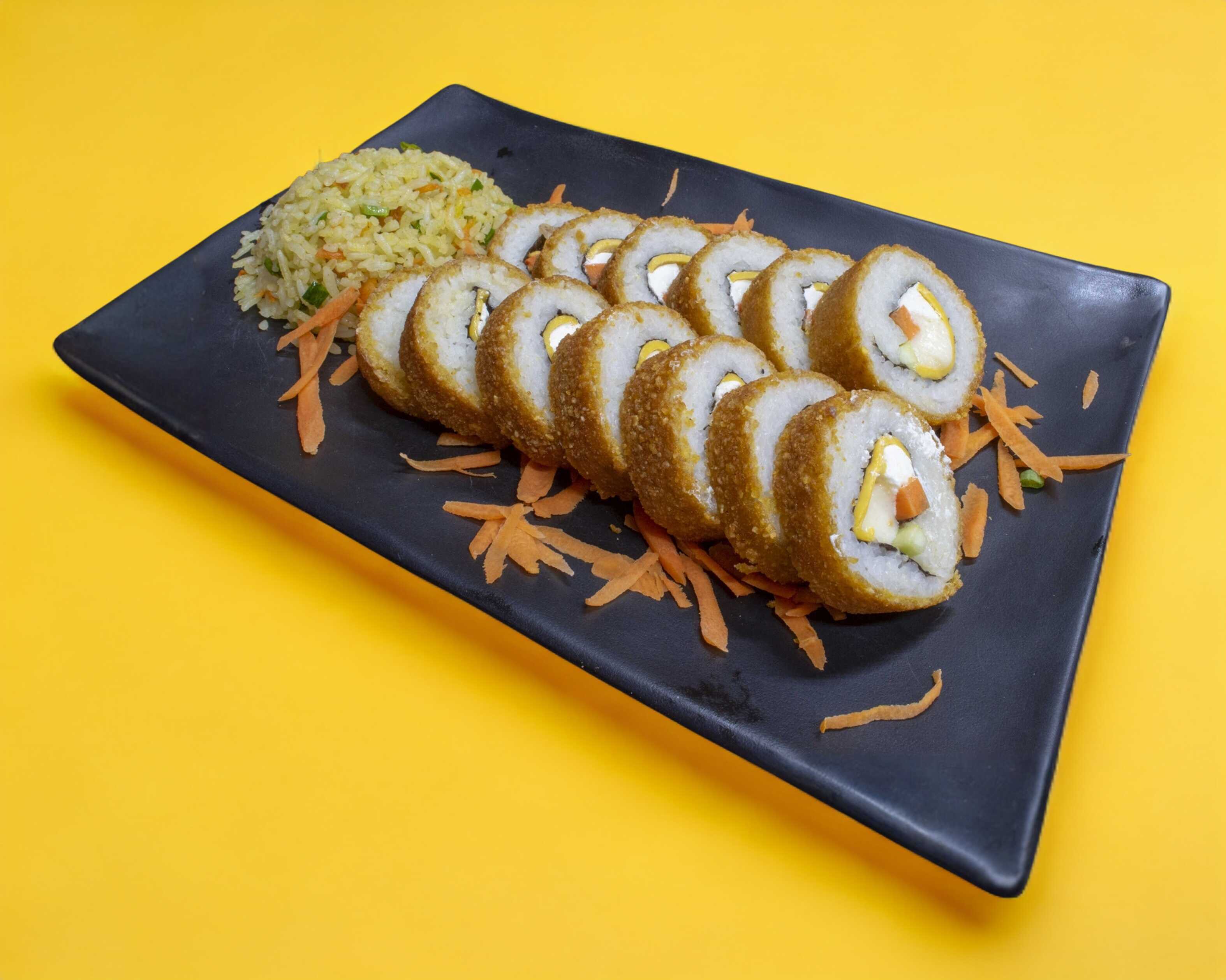 Este no lleva ninguna carne es un sushi empanizado con tres quesos