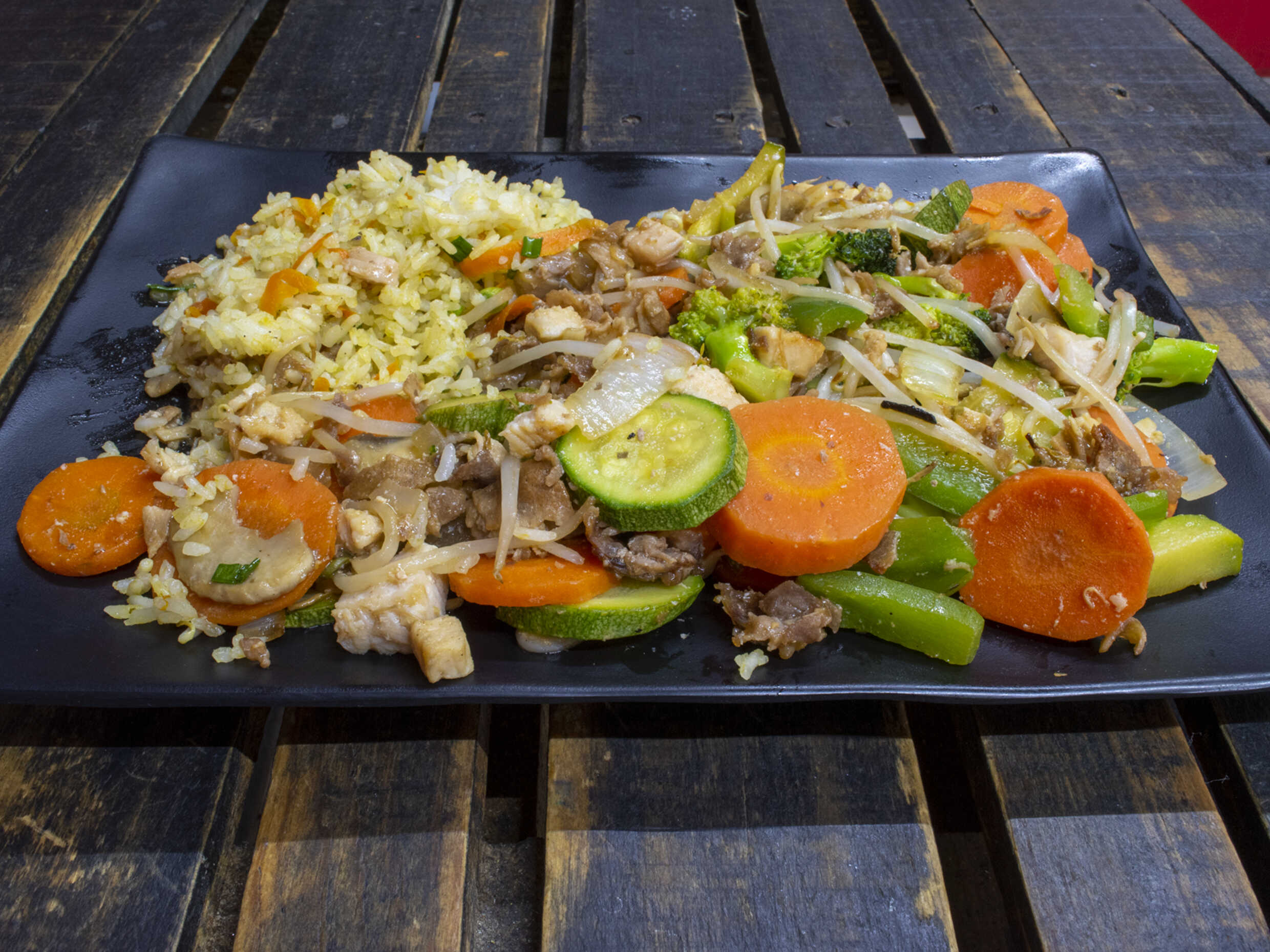 1Tepanyaki Res o Pollo + 1 Rollo Won-ton +1Refresc