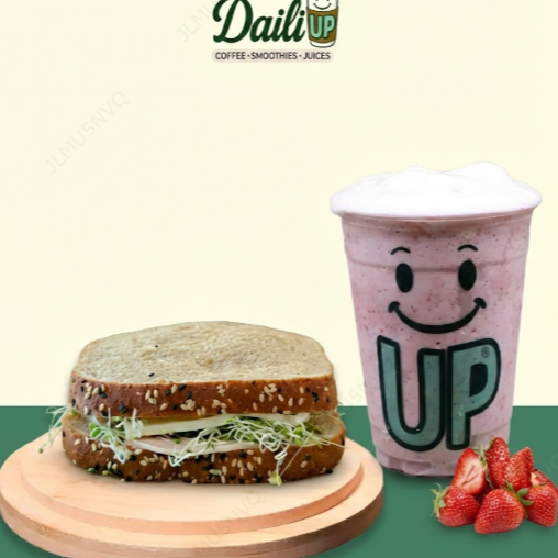 Smoothie fresa pure Daili Up bebida fría base fresa natural chocolate blanco avena lleno de sabor dulce con aroma intenso. Ideal para iniciar el día o acompañar tu rutina.