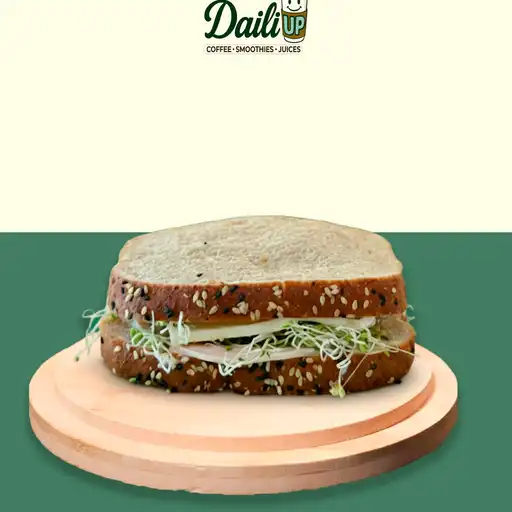Saludable sándwich elaborado con alfalfa jamón y panela de alta calidad.