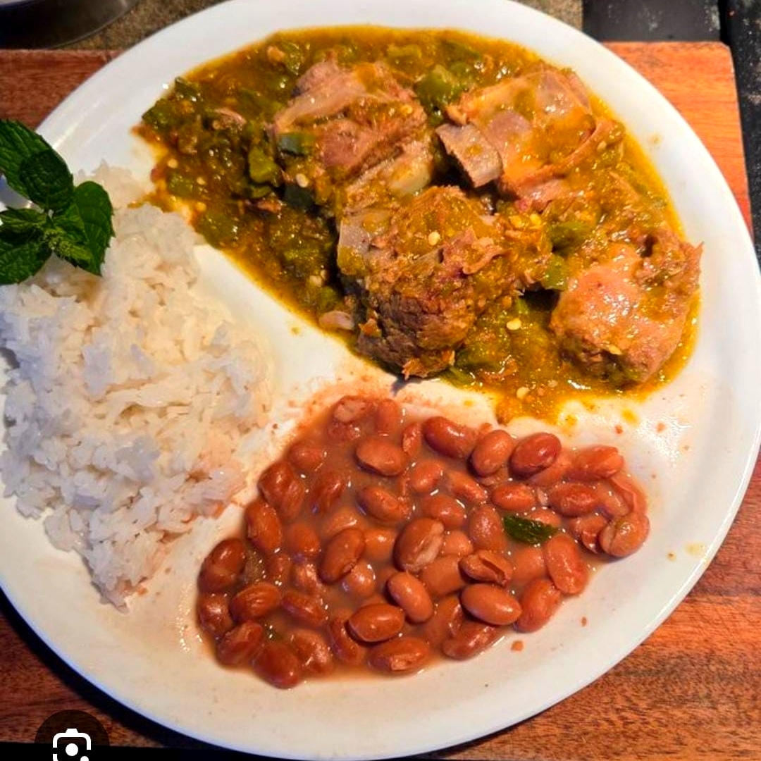 LENGUA EN SALSA VERDE ARROZ/FRIJOLES