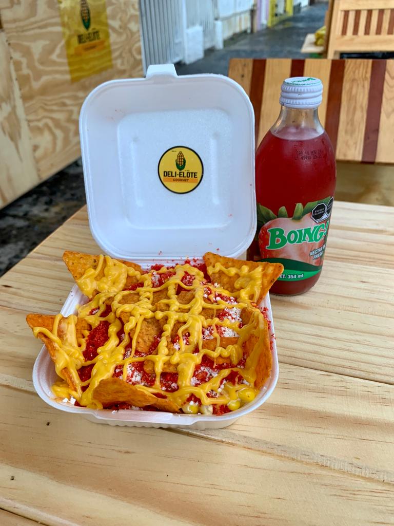 Elote blanco incluye 2 aderezos,2 quesos y 1 topping triturado, incluye Cheetos hot enteros 350Gr Aprox
