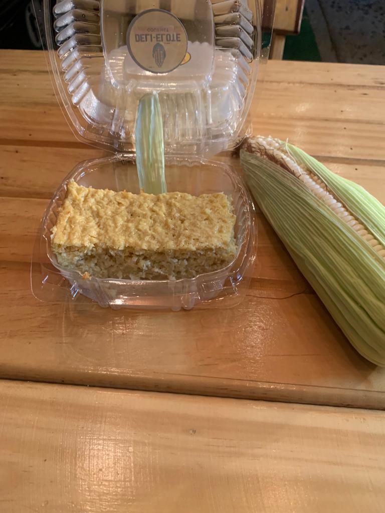Prueba nuestra deliciosa pieza de pan de elote el precio es individual, 6x6cm