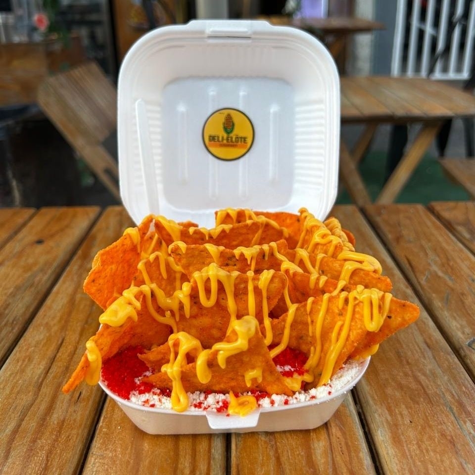Elote amarillo, incluye 2 aderezos, 2 quesos y 1 topping triturado, incluye Doritos nacho enteros