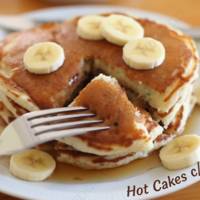3 Hot Cakes c/platano natural con tu complemento favorito