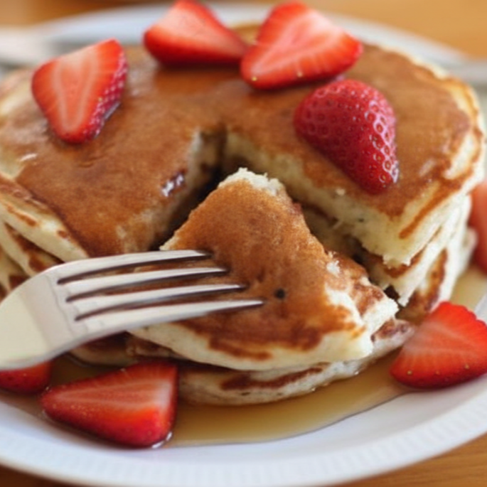 Tres Hot Cakes con Platano-Fresa, complemento a tu eleccion