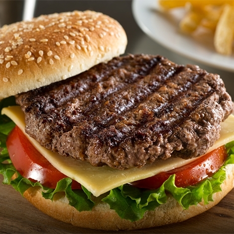 Hamburguesa de arrachera 250 grs con queso derretido, incluye papa a la francesa