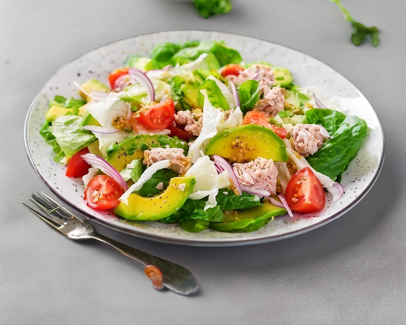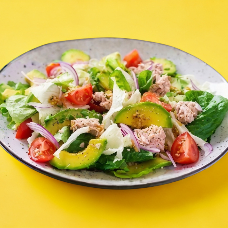 Ensalada con base de lechuga italiana, sangría, romana, espinaca, acelga, atún, complemento, aderezo y topping a elegir.