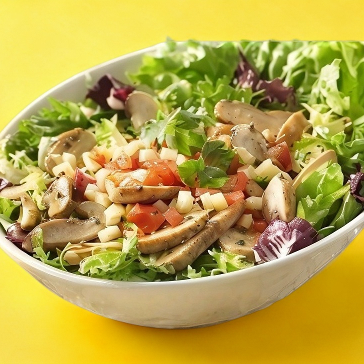 Ensalada mediana con 80 g de pollo a tu gusto, con base de lechuga italiana, sangría, romana, espinaca, acelga acompañada de 5 complementos, 1 aderezo y 1 topping a elección. (Porción personal).