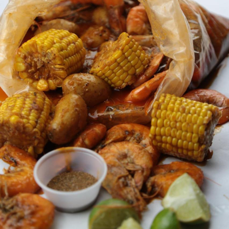 camarones, Papa cambray, elote amarillo