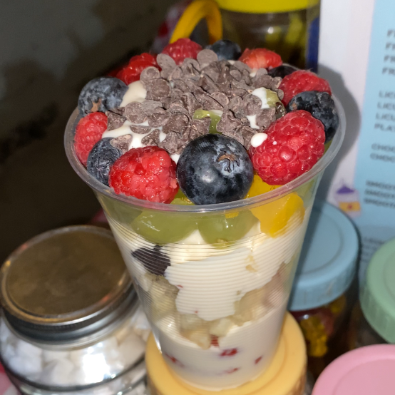Tus frutas favoritas + Crema Dulce + 2 Toppings