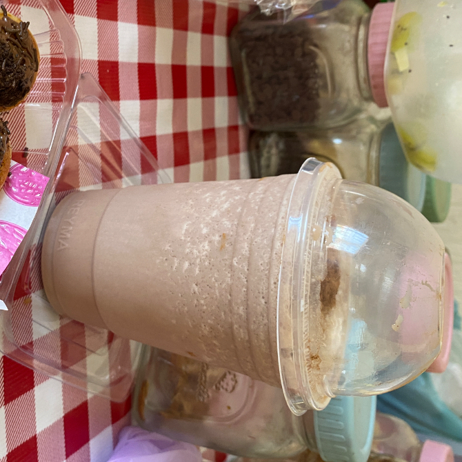 Leche + Chocolate de fresa en polvo + Canela