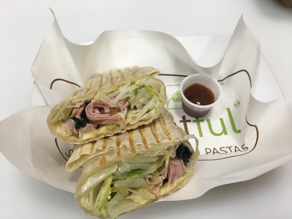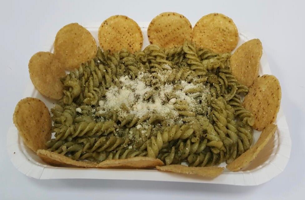 Lechuga, pasta, 80 grs de proteína, 2 ingredientes, 2 complementos y aderezo a elegir.