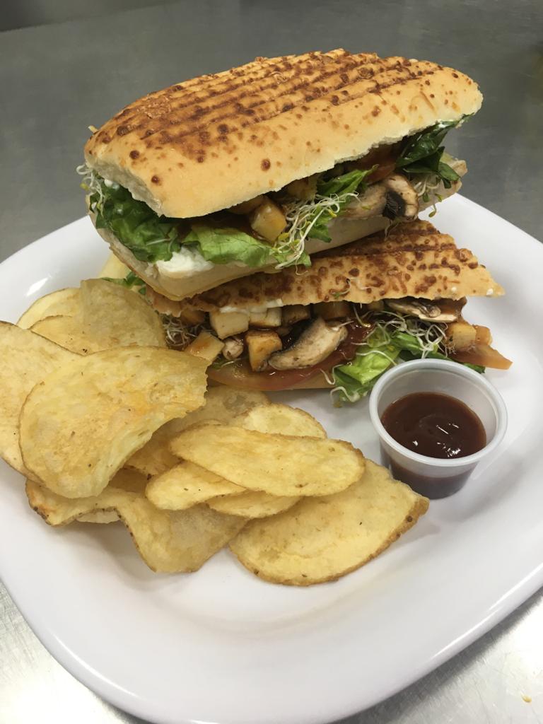 Pollo a la bbq, germinado y champiñon.