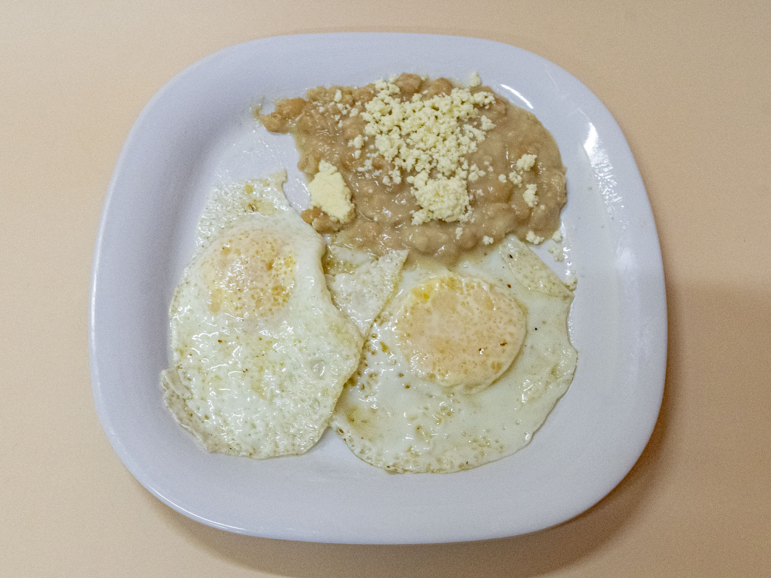 Par huevos estrellados y fríjoles
