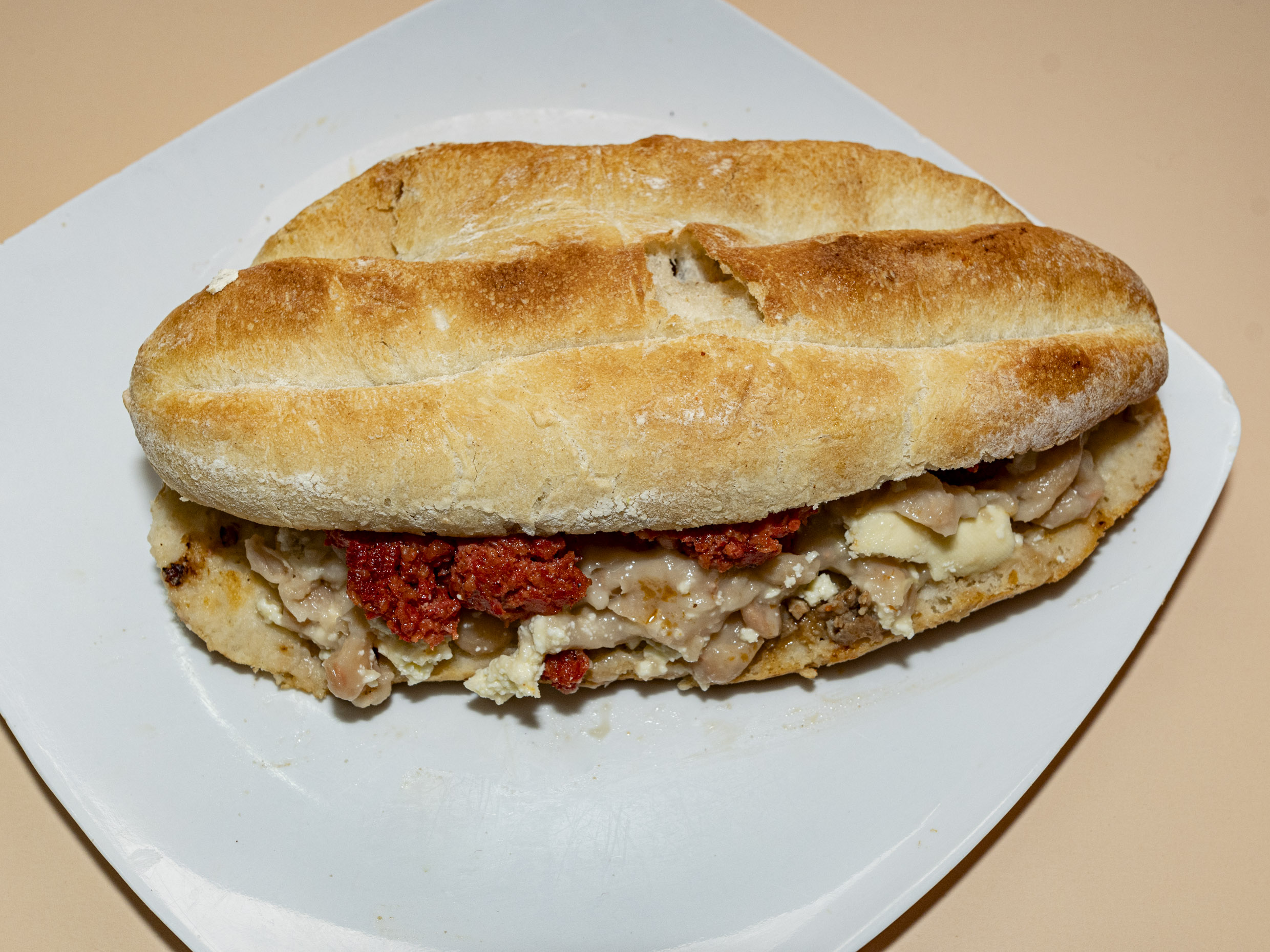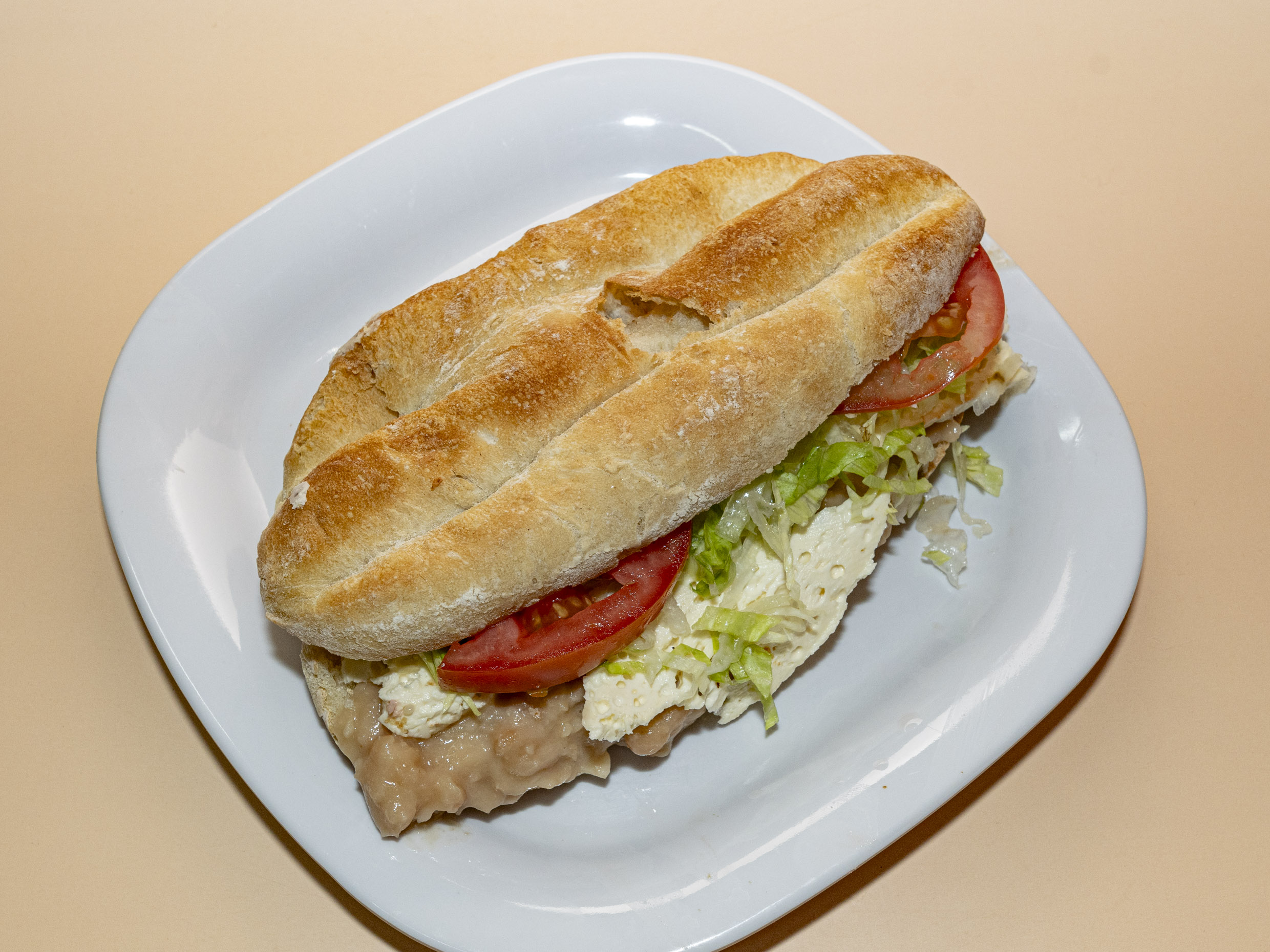 Torta Frijol,chorizo y Queso