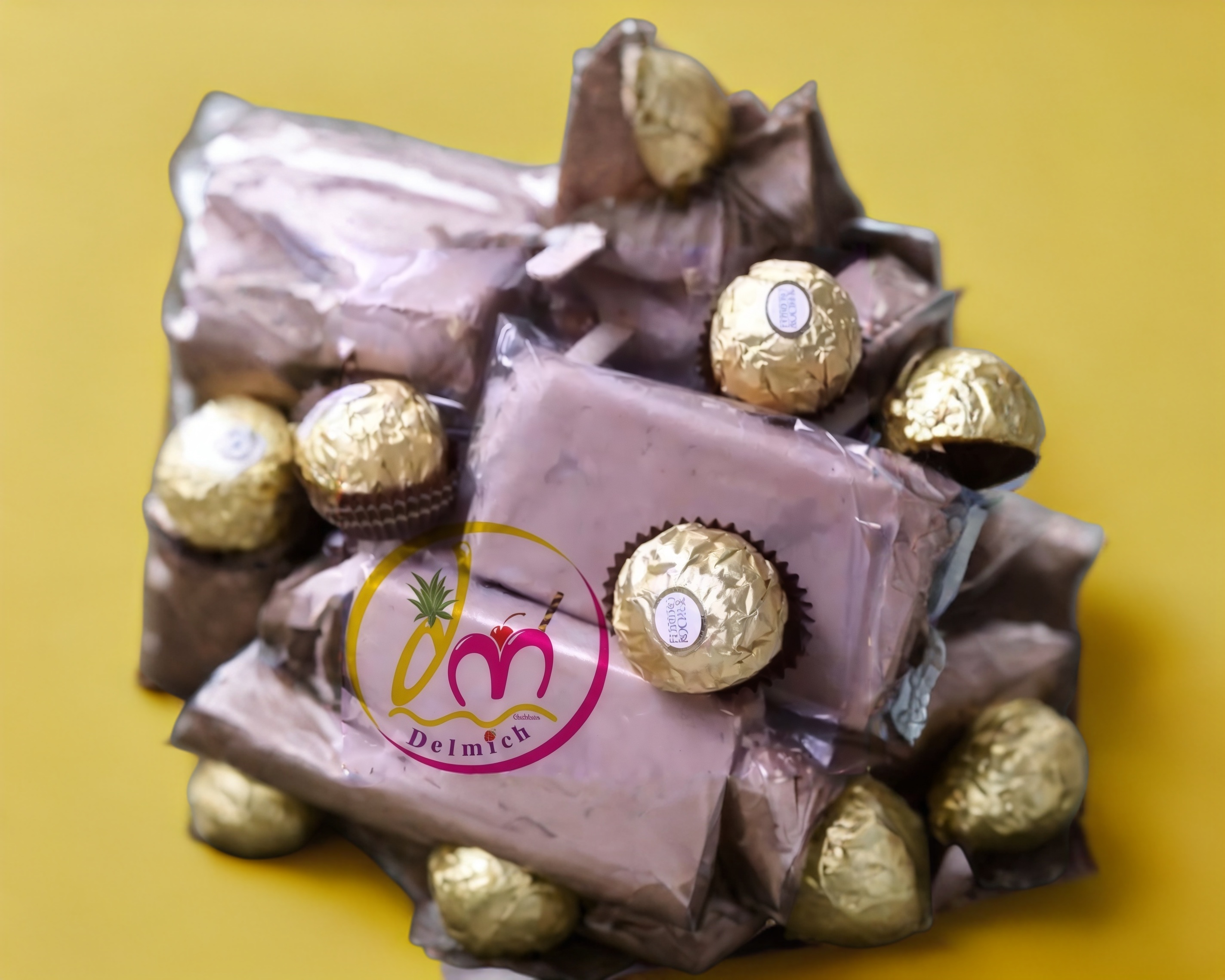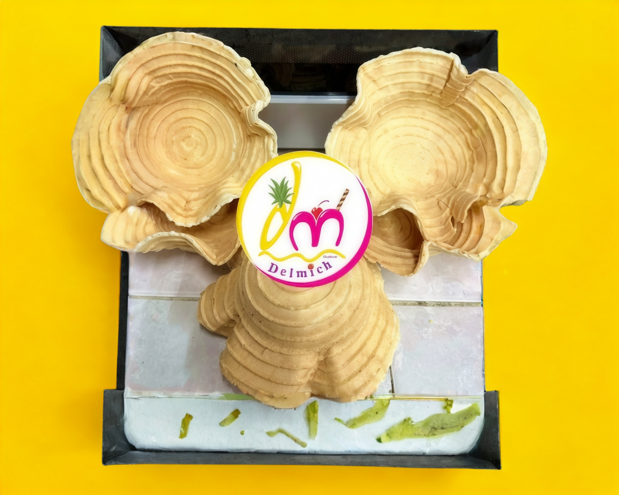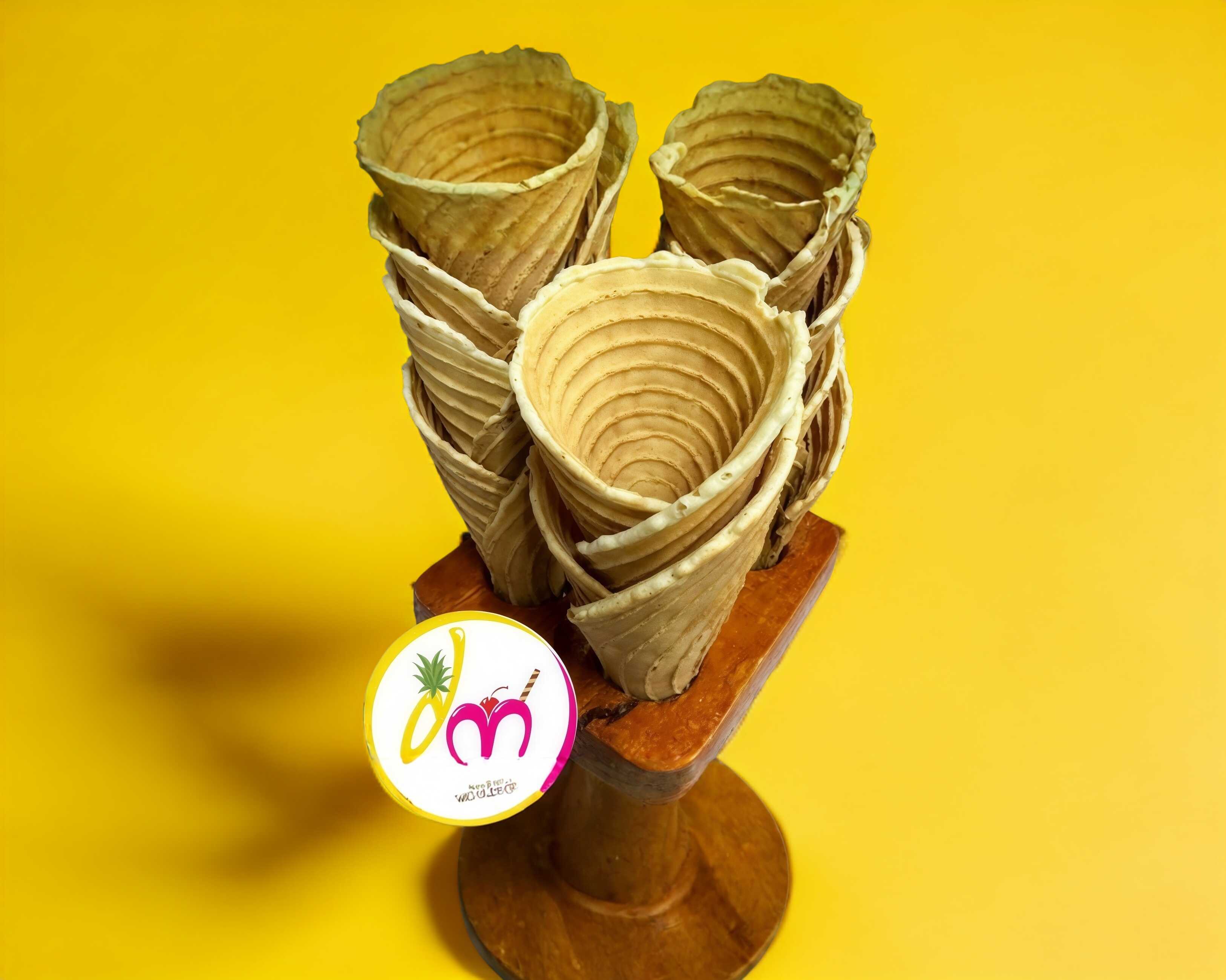 Cono de galleta, con helado a elección. Cubierto de chocolate con coco horneado o rayado.