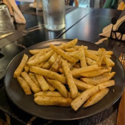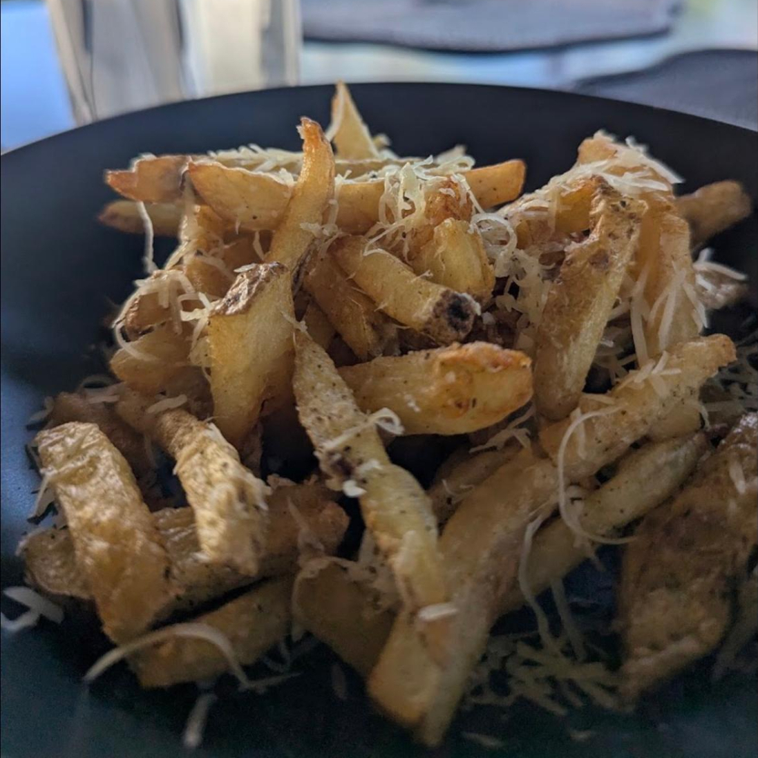 Papas fritas con aceite de trufa, parmesano y hierbas provenzales.