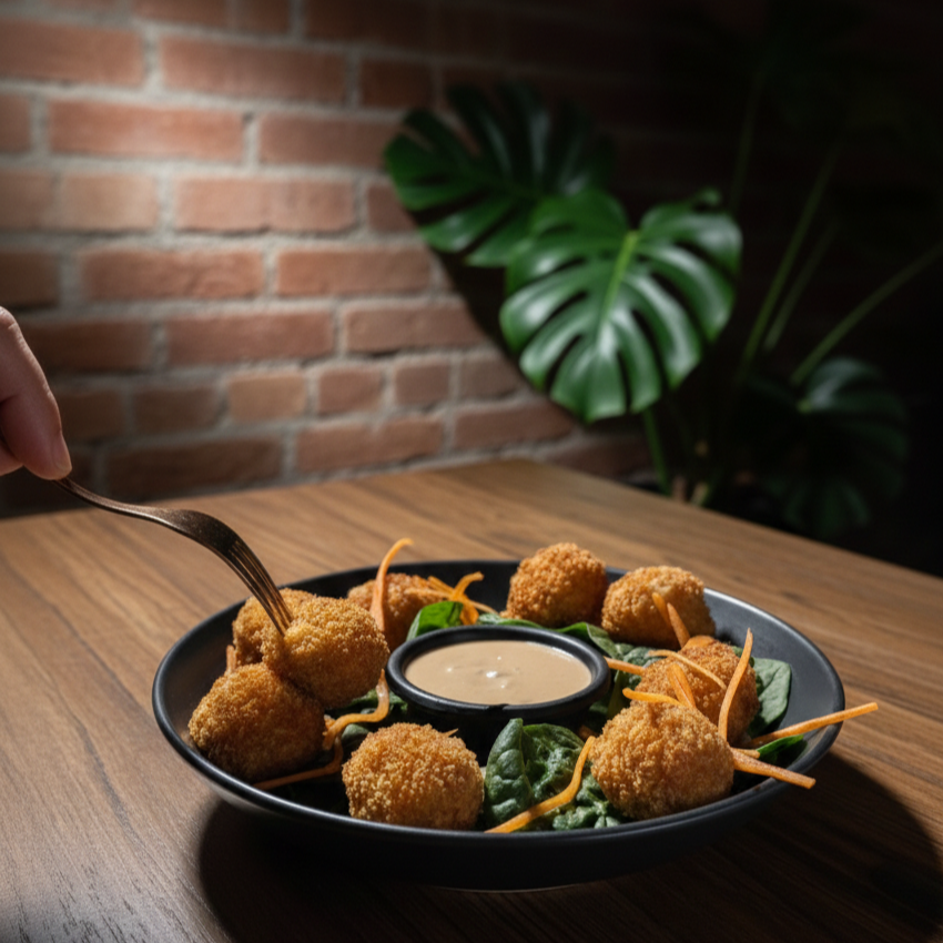 Croquetas doradas rellenas de atún fresco, queso crema y manchego. 8 piezas