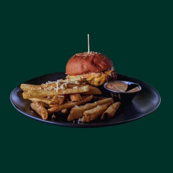 Pan brioche, carne de lomo premium, queso cheddar y aderezo estilo costa oeste.