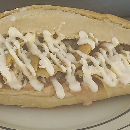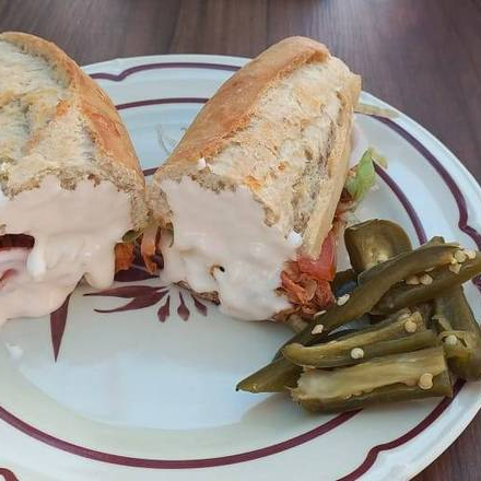 Bolillo, crema, lechuga, jitomate, cebolla y jamón.