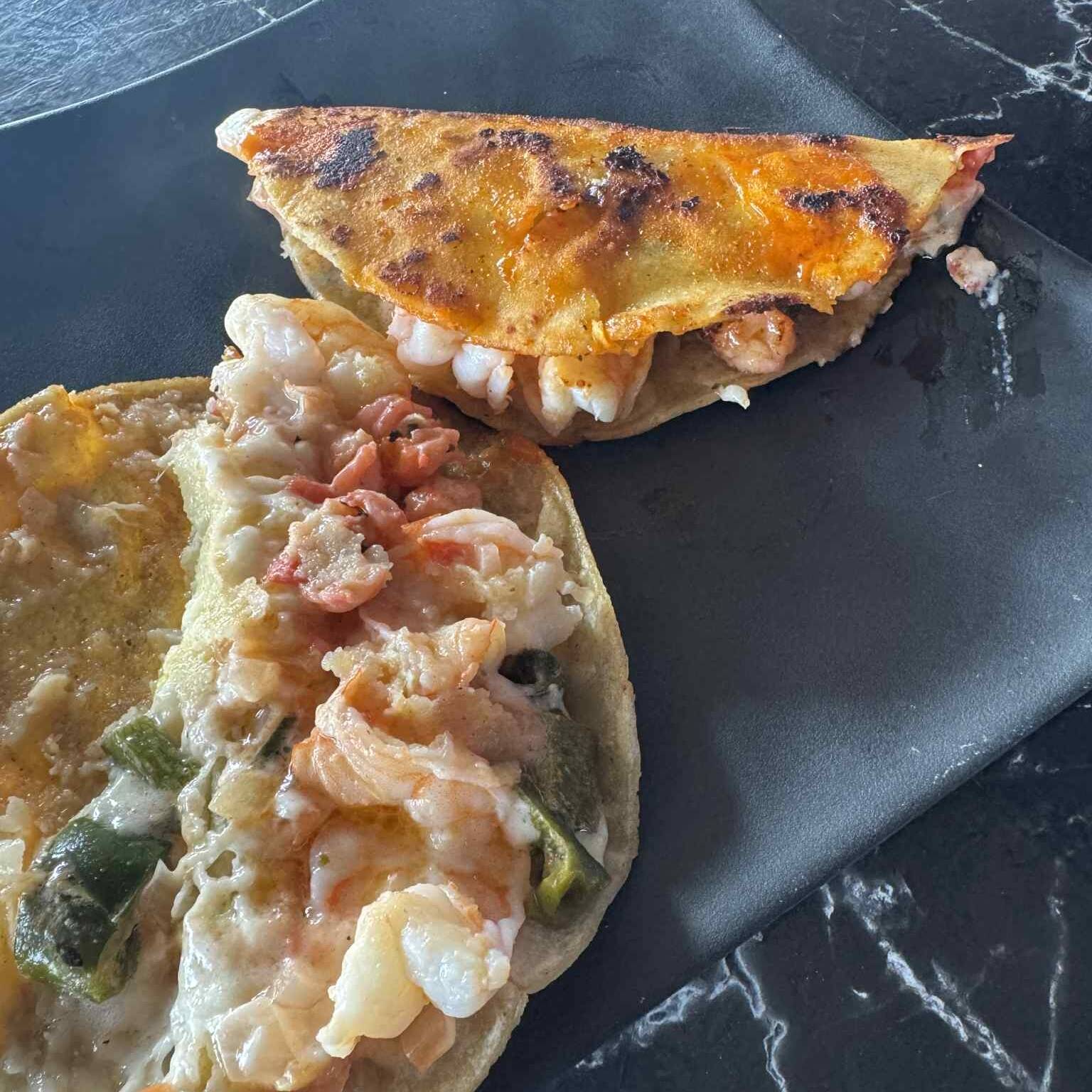 taco gobernador grande tortilla normal, queso , camaron , chile morron doradito en adereso para sarandeado