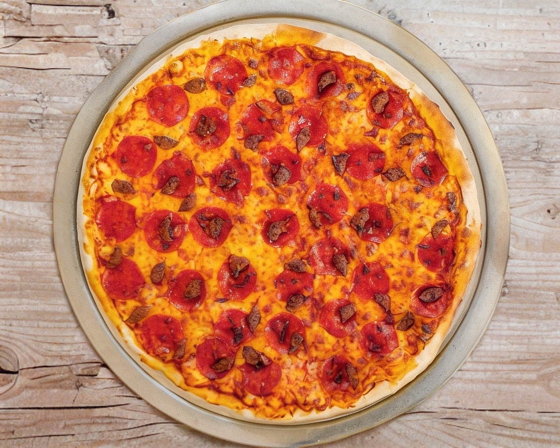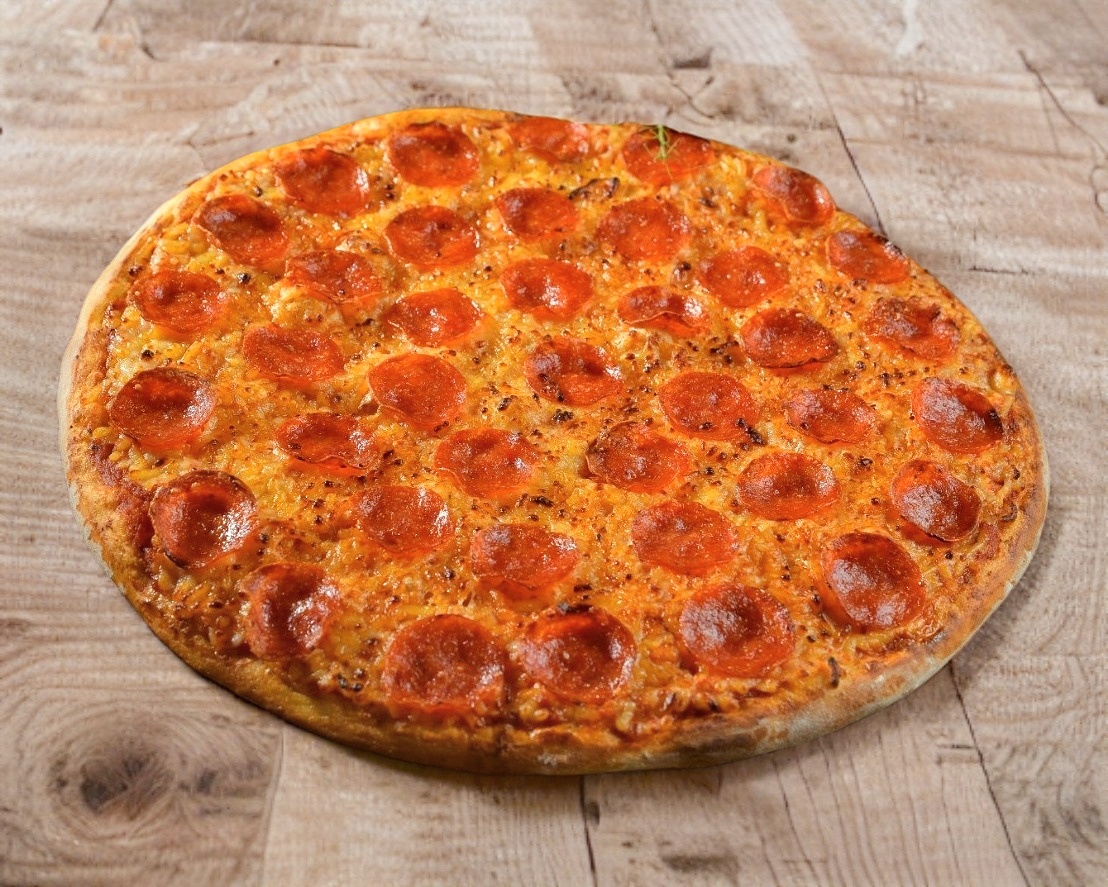 Pizza Grande de 35 cm, 8 rebanadas. Elige una entre queso, hawaiana o pepperoni para 4 personas maxima.