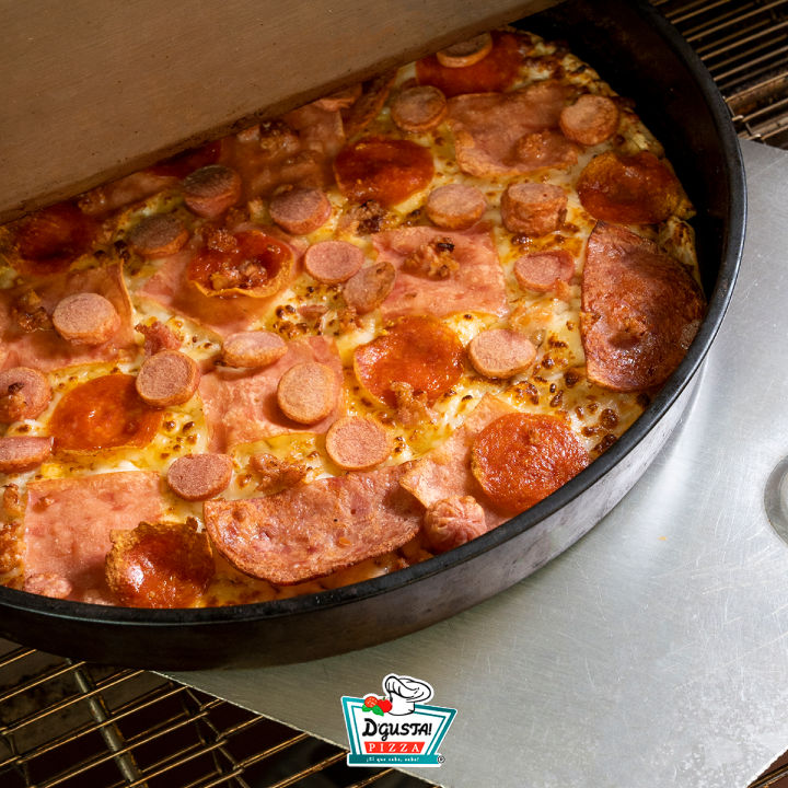 Pizza de jamón, salami, tocino, salchicha y pepperoni.