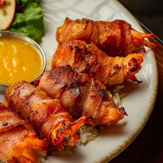 CAMARONES ALA DIABLA ACOMPAÑADO DE PASTA ALFREDO Y ENSALADA