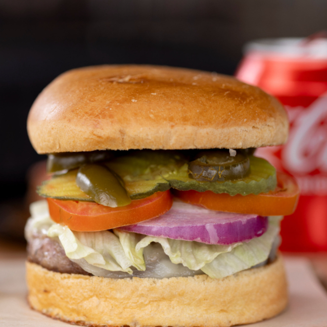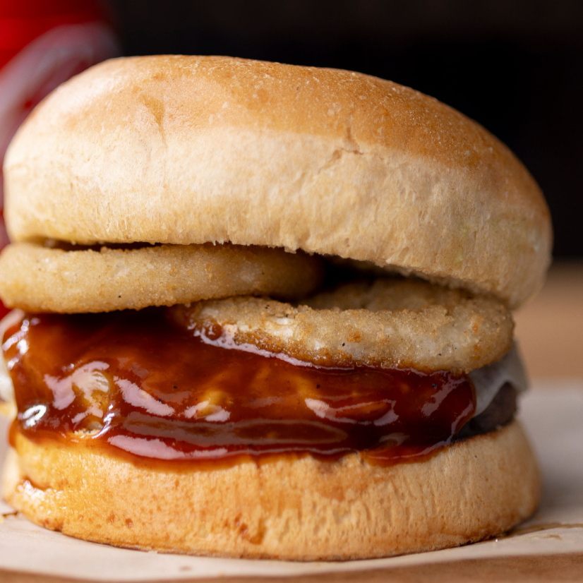 Carne jugosa, queso blanco, aros de cebolla crujientes y salsa ahumada. Una combinación poderosa y llena de sabor.