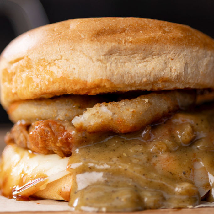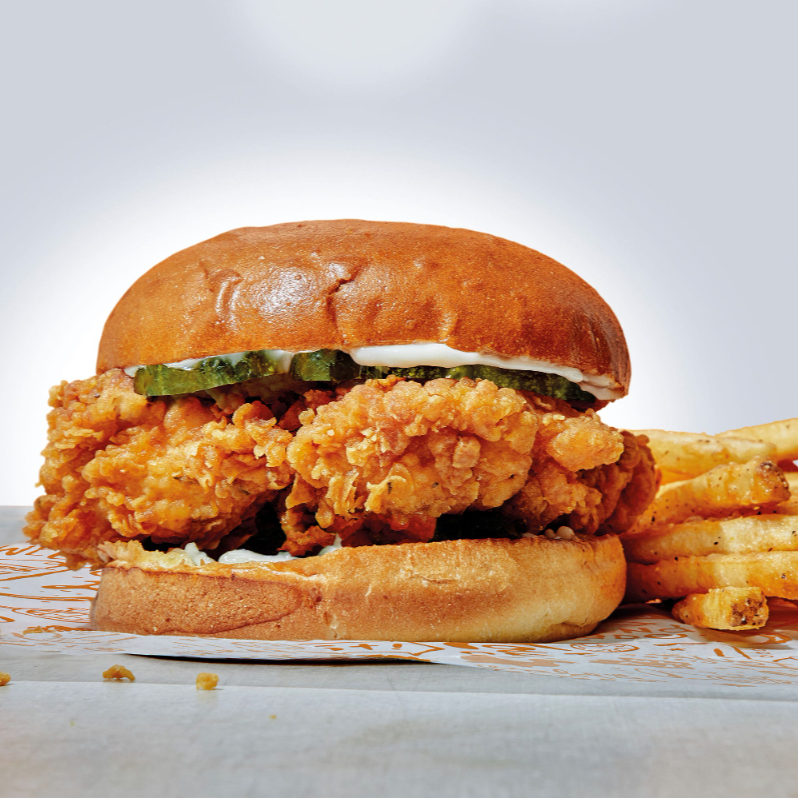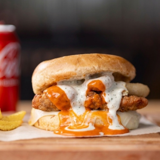 Crispy por fuera, suave por dentro. Un jugoso filete de pollo marinado, empanizado con especias de la casa y frito hasta lograr un crunch perfecto. Se sirve en un bollo brioche dorado, ligeramente dulce y mantequilloso