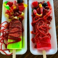 Pepino, salchicha, cuerito, cacahuate y rielitos con nuestras deliciosas salsas.