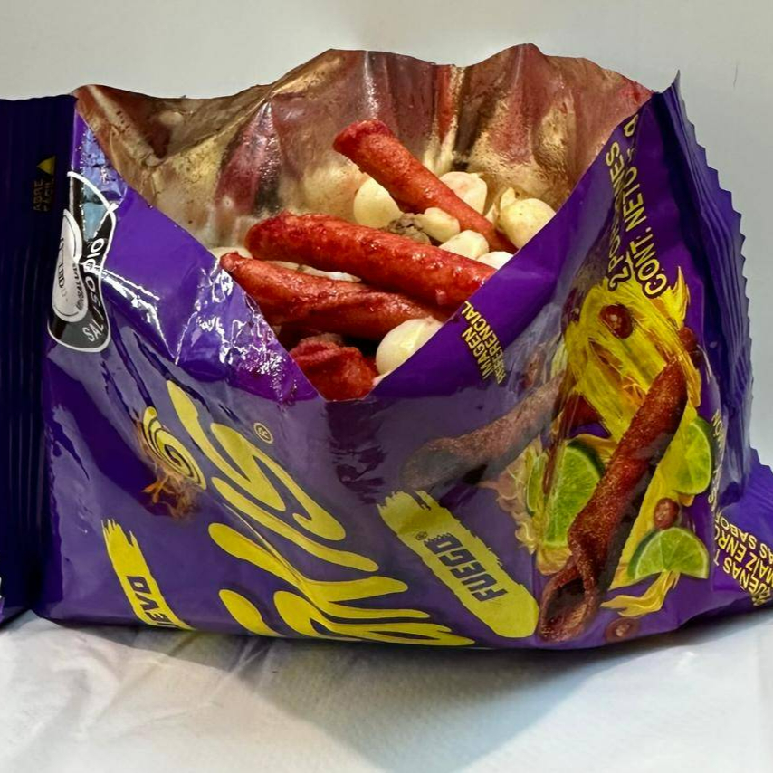 Dos frituras pepino, salchicha, cuerito, cacahuete y rielitos con nuestras deliciosas salsas, frituras.