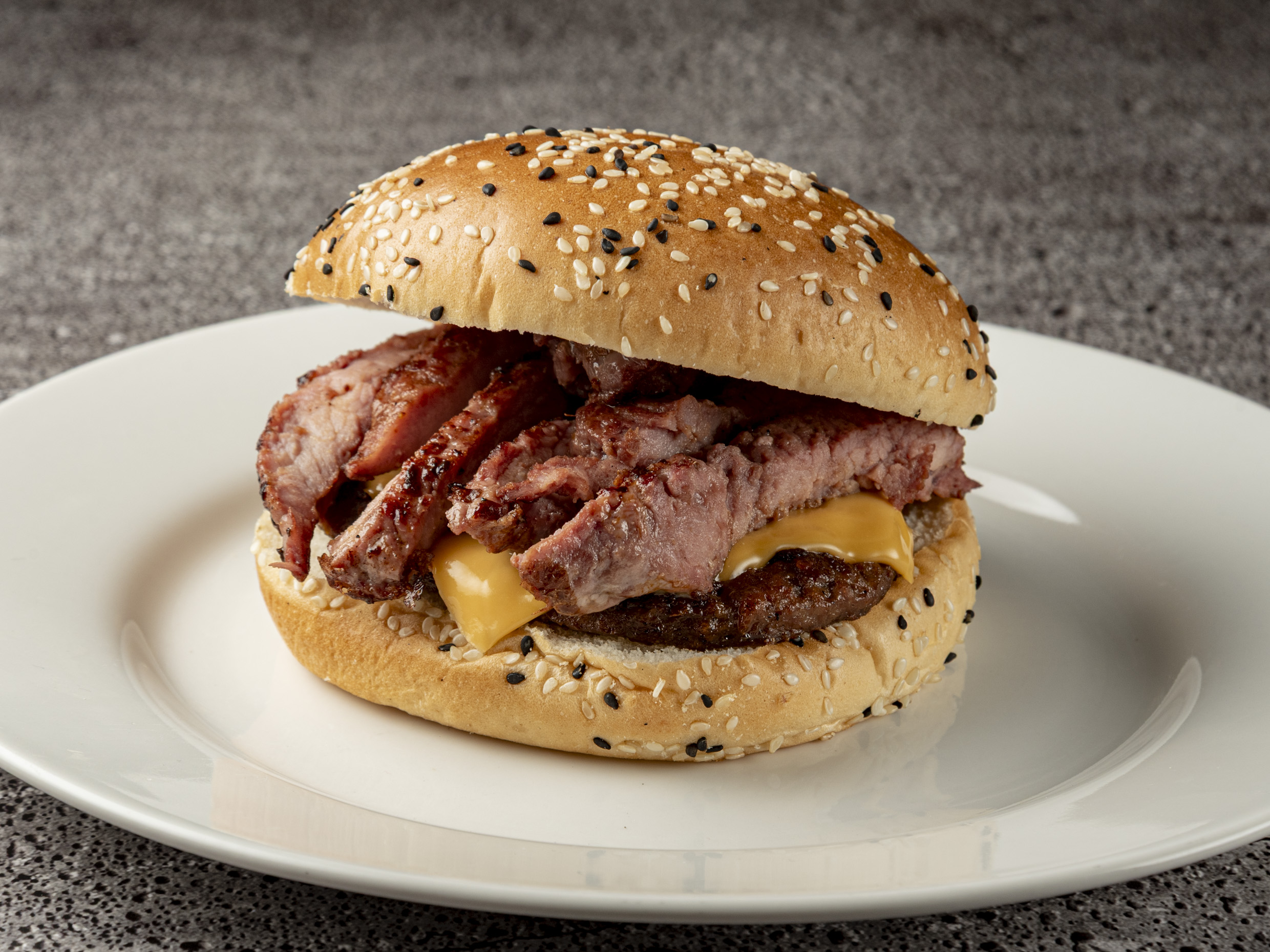 100 g De carne de res, arrachera, jitomate, cebolla, lechuga, queso amarillo, queso blanco, cebolla guisada.