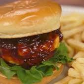 Hamburguesa con nuestro adobo especial de BBQ salteado con tocino y cebolla